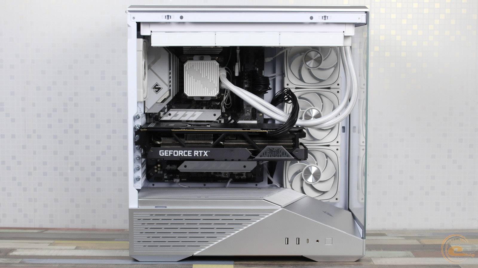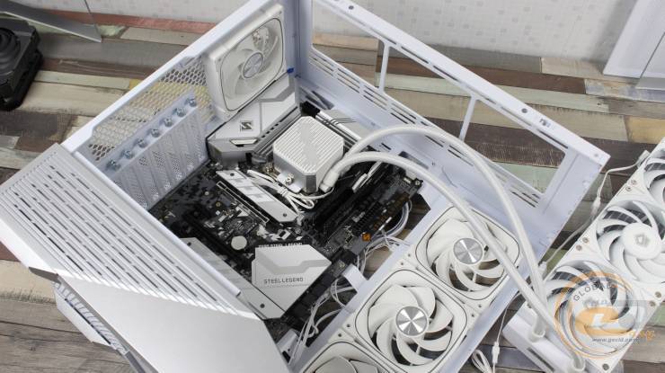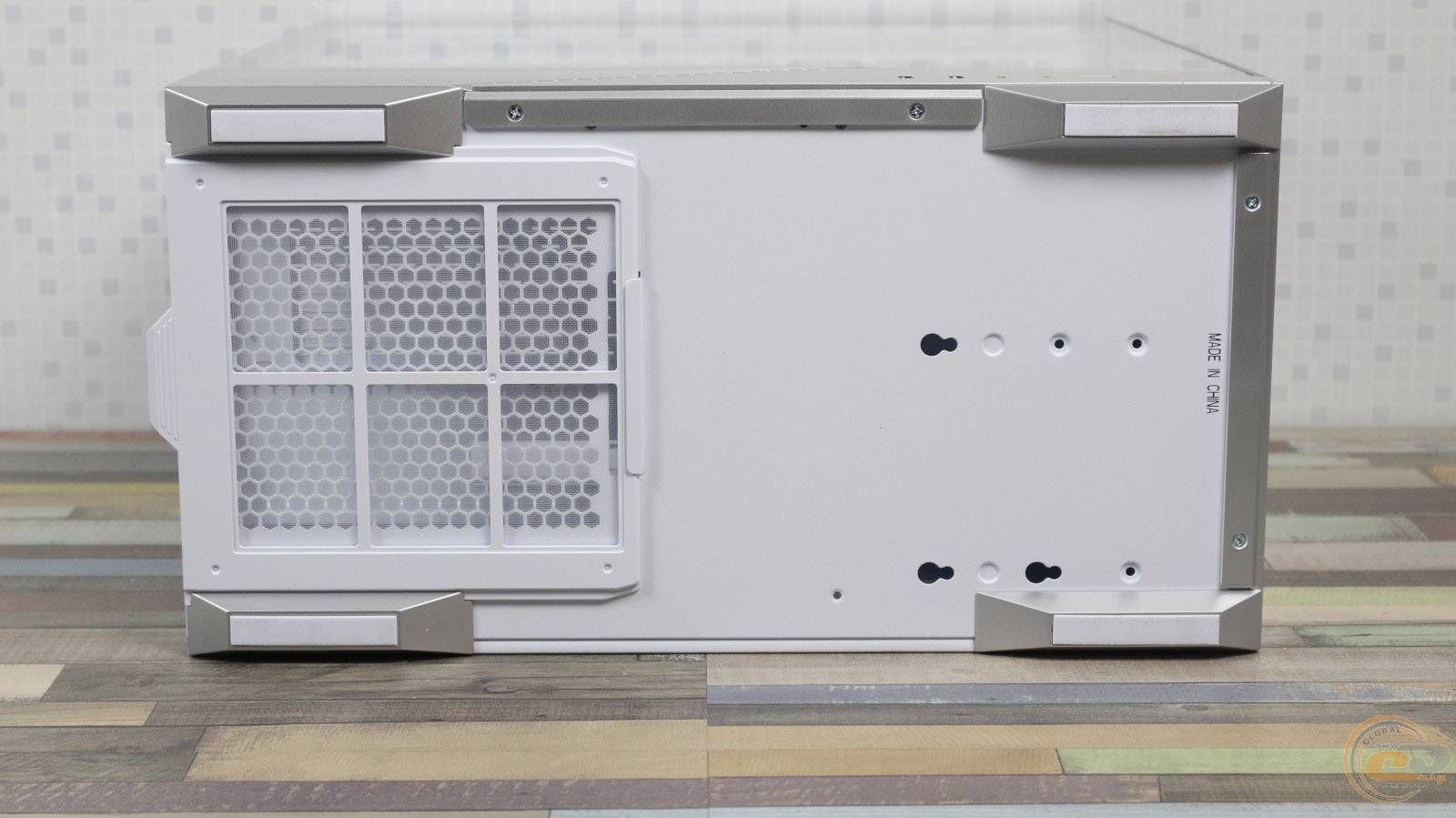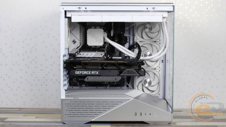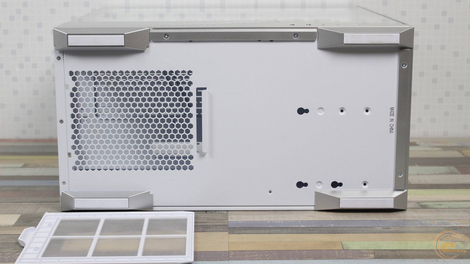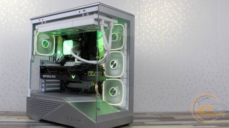 1STPLAYER GM7 виглядає значно дорожчим, ніж він є насправді, і повністю реалізує всі візуальні переваги «акваріумного» корпуса, при цьому залишаючись більш компактним та вужчим. Завдяки панорамним скляним панелям виробник подбав і про ефективну циркуляцію повітря всередині – наші тести показали, що комплектні вентилятори забезпечують мінімальну різницю температур компонентів у порівнянні з відкритим стендом. Якщо ж ви плануєте використовувати «гарячу» відеокарту, додаткові вентилятори на кожусі блока живлення стануть доречним доповненням: для цього на його боці передбачена перфорована зона для забору холодного повітря.