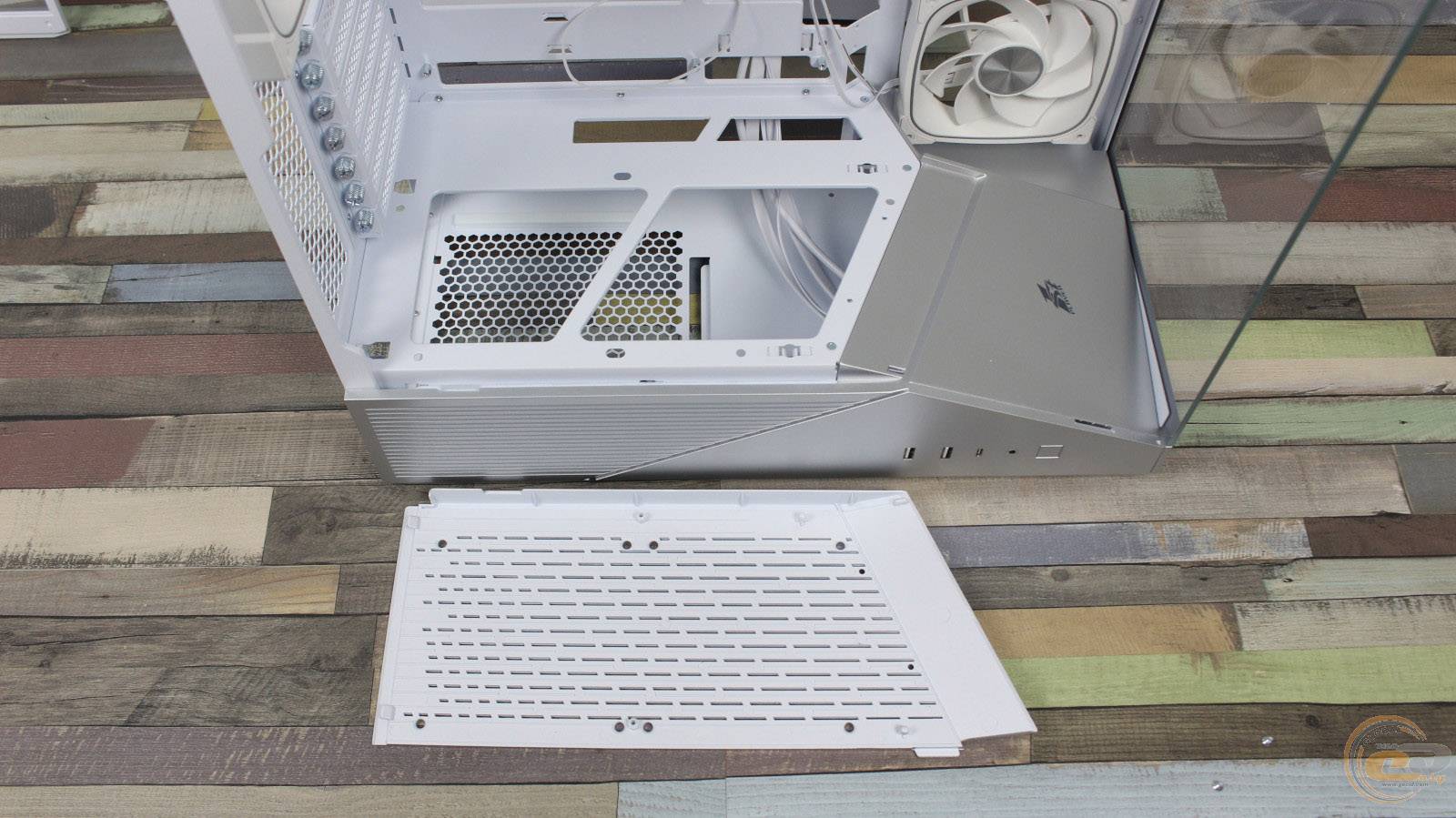 Додатково в корпусі можна встановити два 120-мм вентилятори на знімну пластикову панель нижнього кожуха над блоком живлення. Панель фіксується двома гвинтами, а поруч розташована перфорована ділянка, що забезпечує вентиляцію та подачу холодного повітря до вентиляторів.