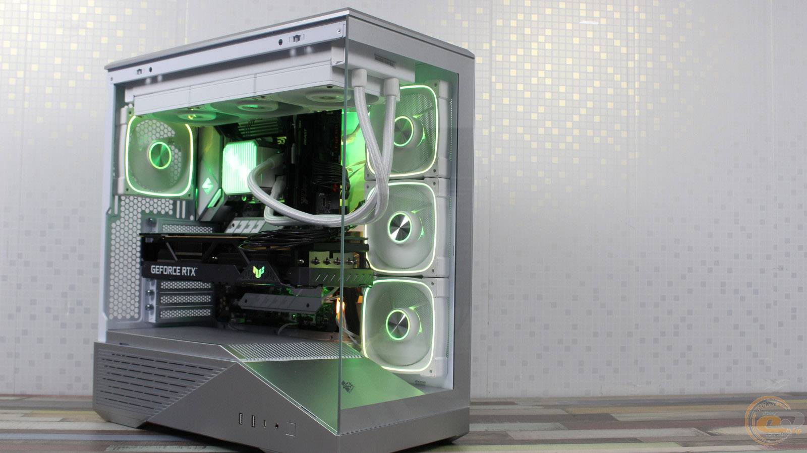 Температура довкілля на момент проведення наших тестувань становила 21°С. Охолоджувати компоненти у 1STPLAYER GM7 допомагали чотири корпусні вентилятори та 360-мм процесорна РСО ID-COOLING DX360 MAX. Корпусні вертушки працювали на максимальній швидкості – 1650 об/хв, а вентилятори на радіаторі РСО – на 2200 об/хв. У BIOS материнської плати додатково було увімкнено Intel Adaptive Boost Technology для збільшення тепловиділення процесора.