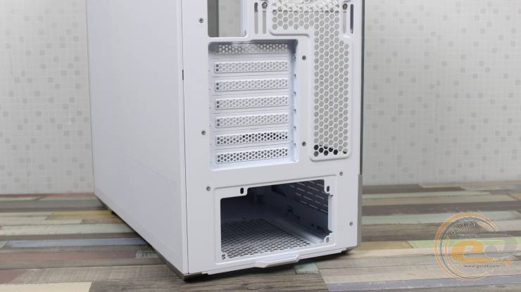 Нижче розміщено сім слотів розширення з багаторазовими перфорованими заглушками. Вертикальне встановлення відеокарти не передбачено, а класичне посадкове місце розраховане на БЖ довжиною до 220 мм.