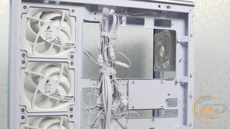 Вентилятори забезпечують користувачу достатню кількість режимів підсвічування і працюють досить тихо навіть на максимальній швидкості. Всі чотири корпусні вентилятори з’єднані між собою, тому для підключення до материнської плати потрібно лише по одному кабелю PWM і ARGB, що значно спрощує керування швидкістю та підсвічуванням.