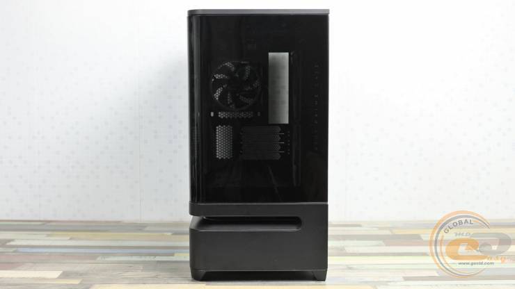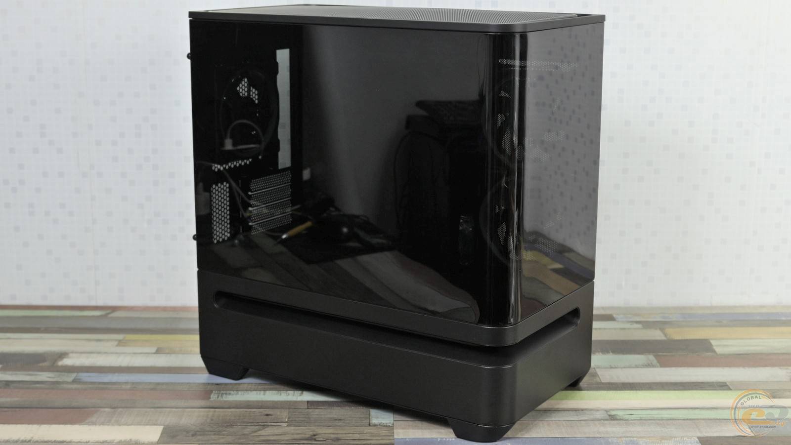 Примітна його особливість — вигнуте скло, яке утворює єдиний елемент бокової та передньої панелей. Завдяки цьому насолоджуватися виглядом системи можна з різних ракурсів. А у нижній частині передбачено незвичну нішу, про призначення якої ми розповімо далі.