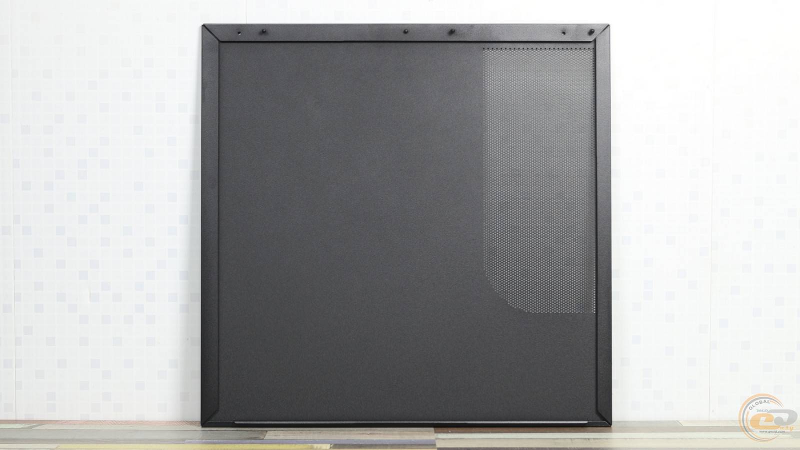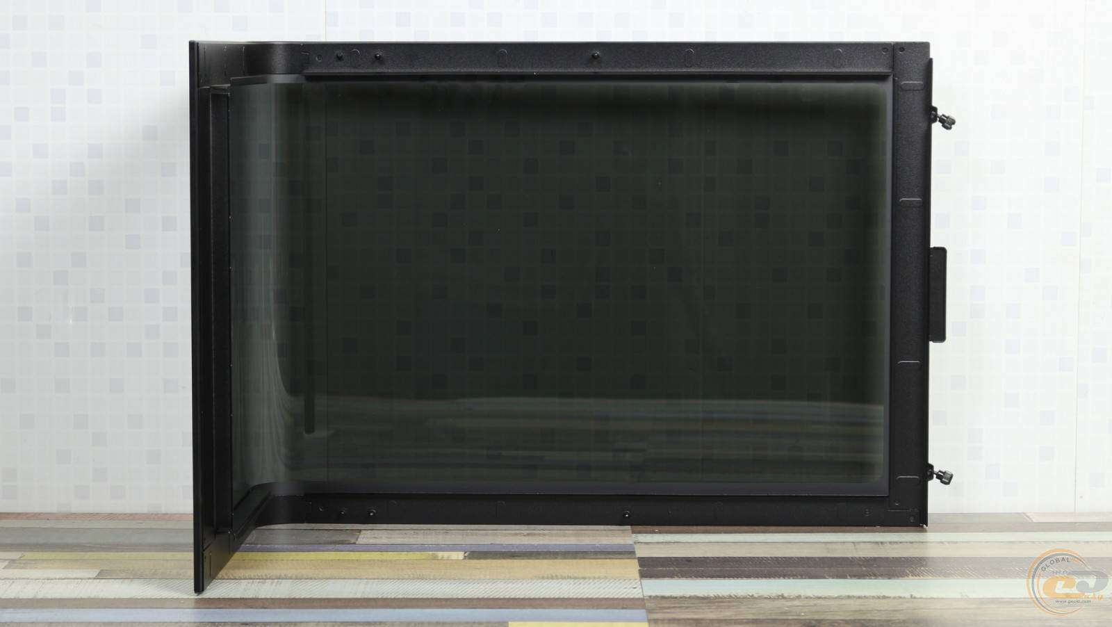 Ліва панель виготовлена з 4-мм загартованого скла, вмонтованого у металеву рамку. Передбачені напрямні полегшують її монтаж, а рейковий механізм у передній частині забезпечує простоту та безпеку встановлення й зняття. Для додаткової надійності два гвинти ззаду фіксують панель, що особливо важливо під час транспортування.