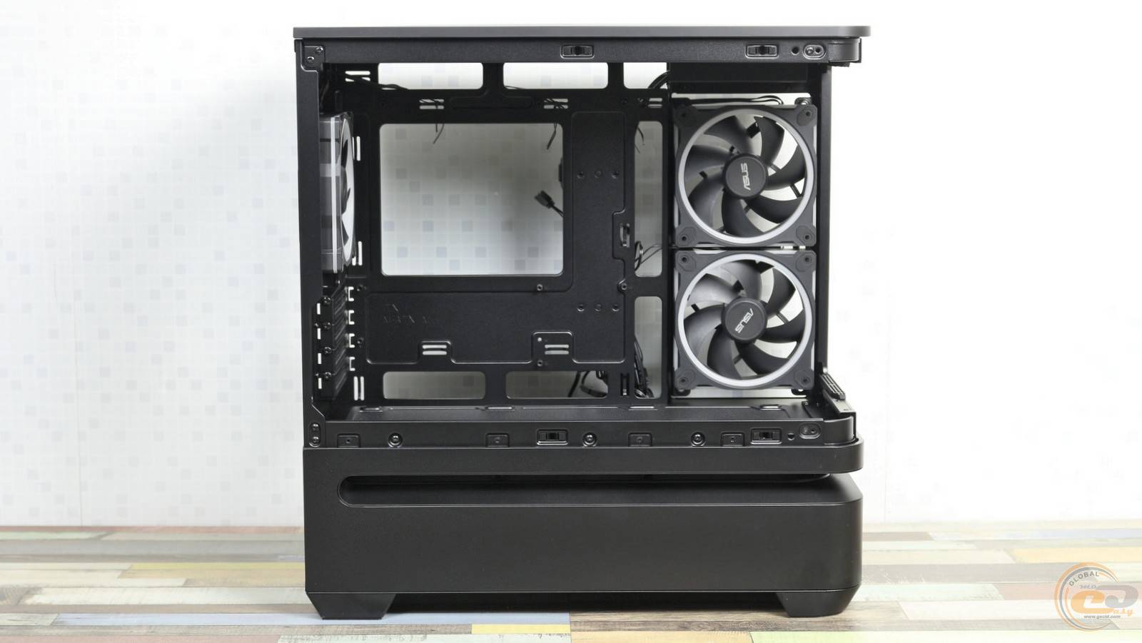 Процес збирання системи в ASUS Prime AP202 ARGB доволі простий. Додаткової зручності додає конструкція, де бокова й передня панелі виконані як єдиний елемент: після їх демонтажу відкривається більше простору для маніпуляцій.