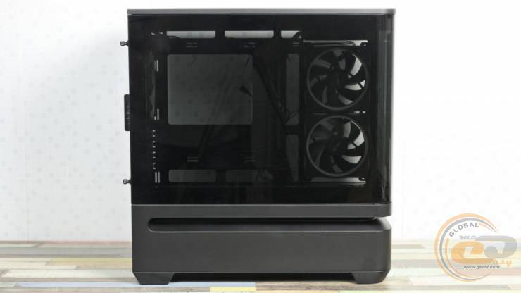 Ще однією візитівкою моделі стала вигнута скляна панель, що охоплює бокову та передню частини. Вона додає системнику ефектного вигляду та дозволяє милуватися внутрішнім наповненням з різних боків.