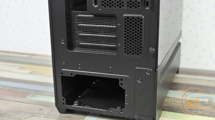 А в самому низу є місце для блока живлення. Два набори отворів дозволять встановити його зручним способом: вентилятором догори або донизу.