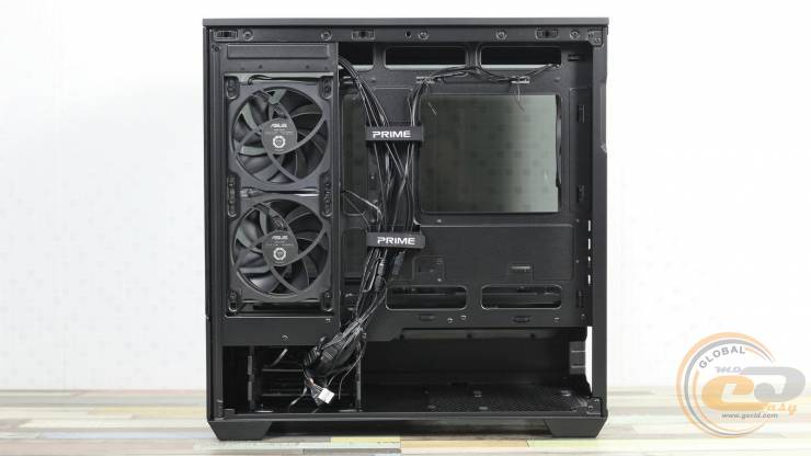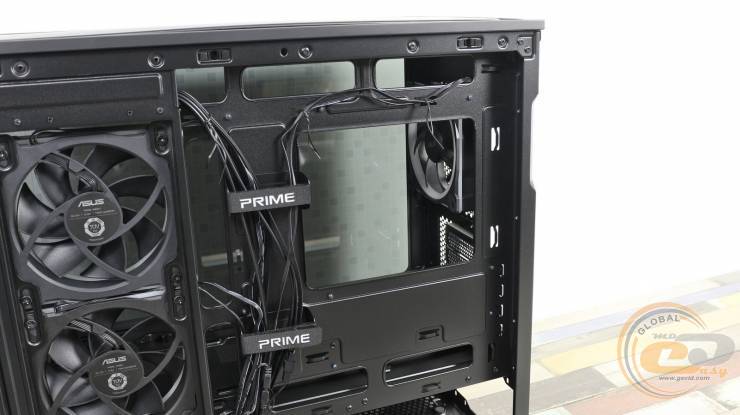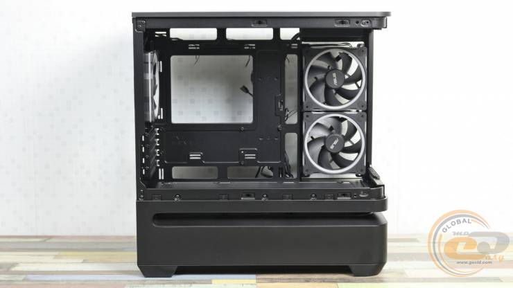 На дні верхнього відсіку передбачено три посадкові місця для 120-мм пропелерів. Відповідна рамка кріпиться парою гвинтів із накатаними голівками що дозволяє легко знімати та обслуговувати її. З вентиляторами чи без — через нішу всередину надходитиме свіже повітря для відеокарти й решти компонентів.