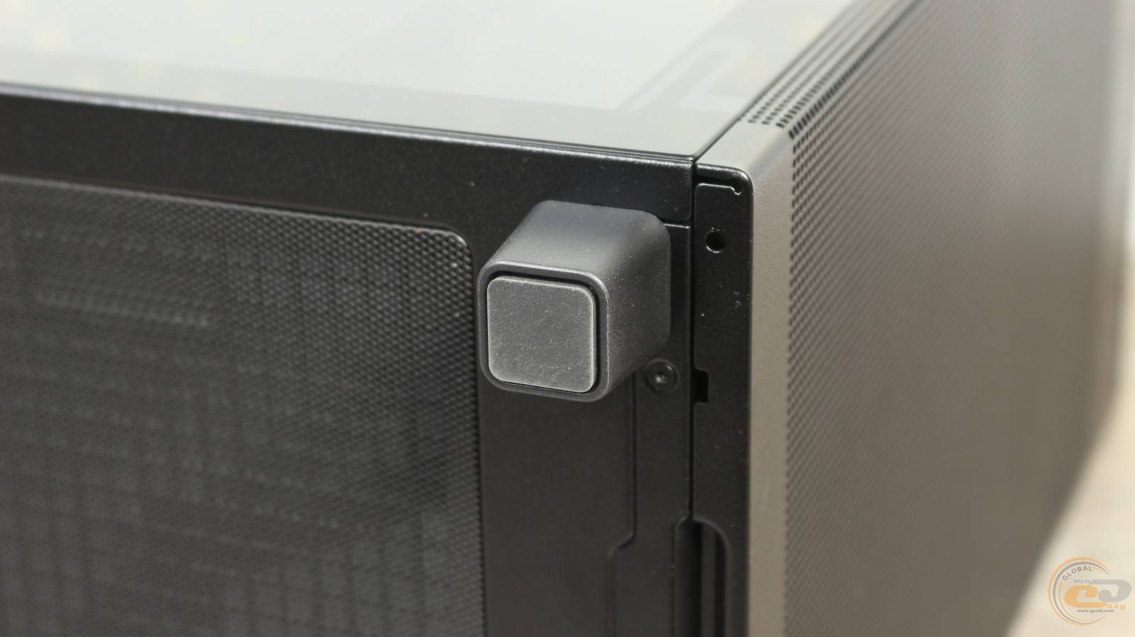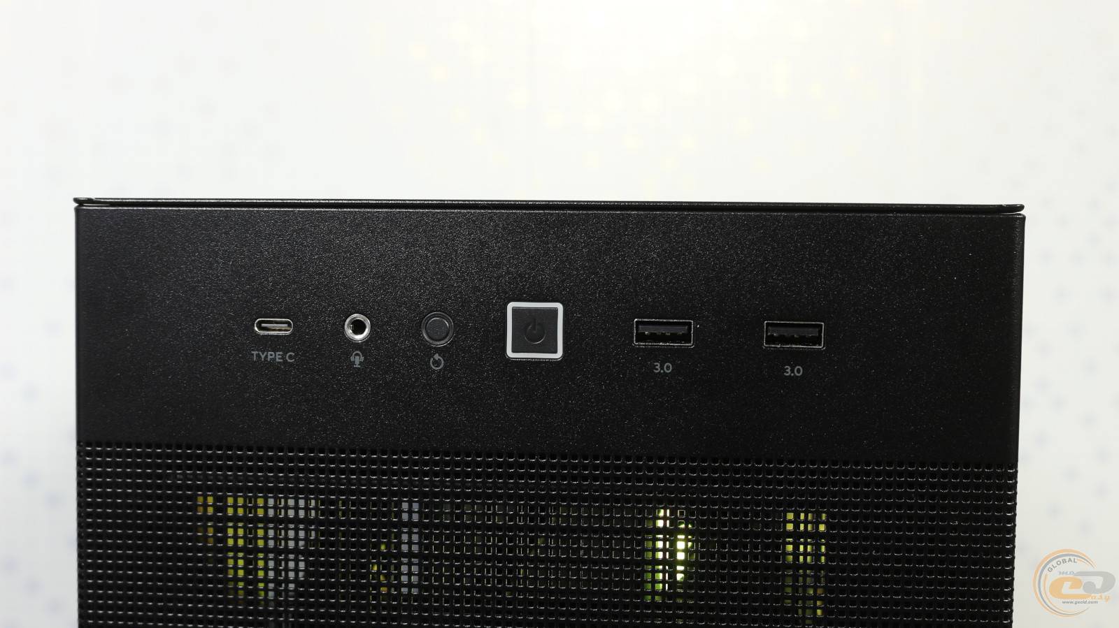 На лицьовій стороні корпуса у верхній частині можна побачити один USB 3.2 Gen 2x2 Type-C та два порти USB 3.2 Gen 1 Type-A. Квадратна кнопка запуску ПК оснащена індикатором з білим приглушеним світінням по периметру.