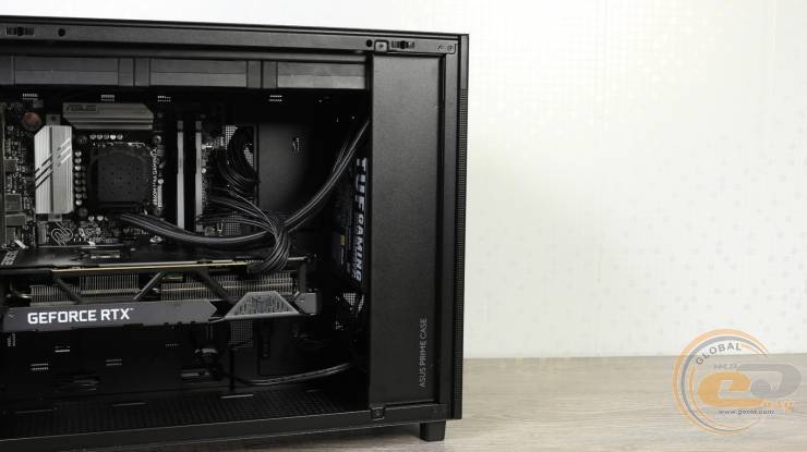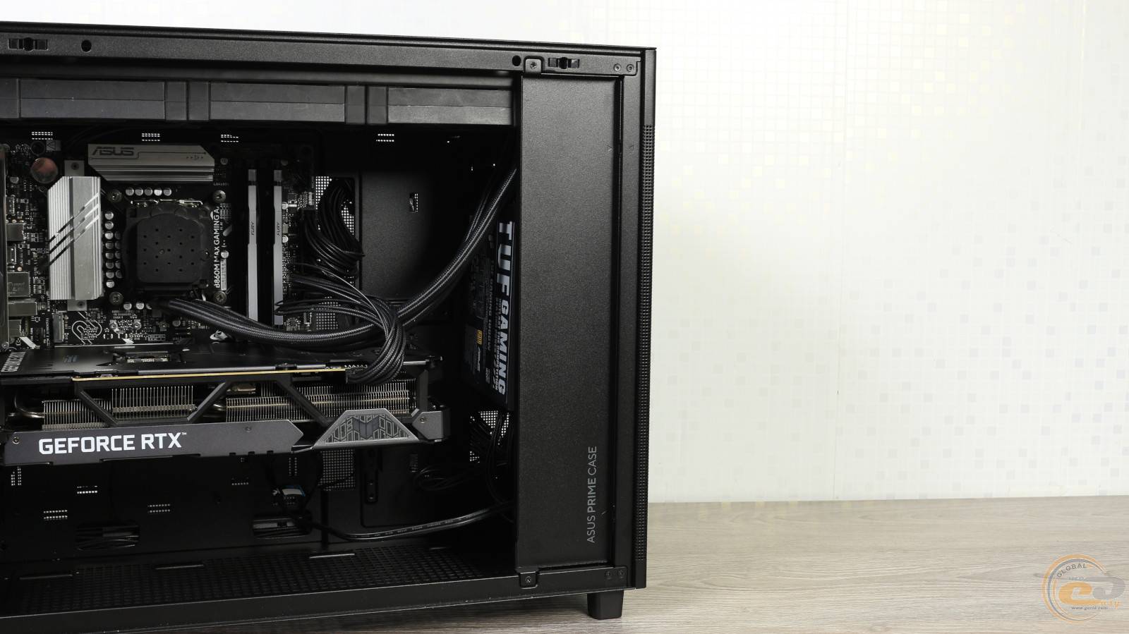 Оскільки перед нами збільшена варіація ASUS Prime AP201, то у неї також не виникне проблем з ефективністю охолодження більшості процесорів і відеокарт. Єдине, під час підбору компонентів слід не забувати про обмеження максимальної довжини відеоприскорювача - 360 мм.