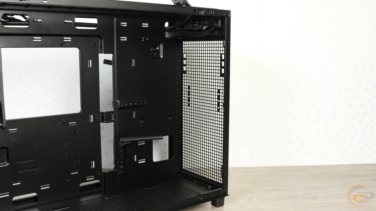 Під нею ховаються місця для встановлення трьох 120-мм або 140-мм вентиляторів, чи взагалі РСО з радіатором довжиною до 360 мм.