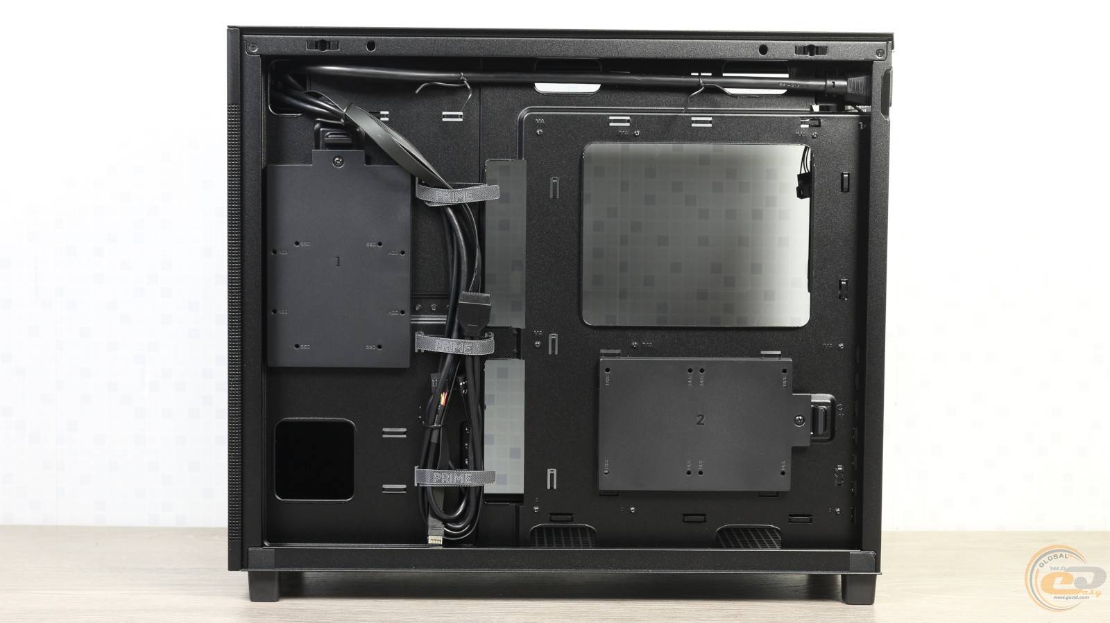 Не дуже тішить лише те, що максимально у цьому корпусі можно розмістити тільки три накопичувачі. Добре, що одне посадкове місце дозволяє обирати між 2,5" та 3,5" варіантами, але у порівнянні з компактнішим ASUS Prime AP201 зменшення їх загальної кількості виглядає кроком назад.