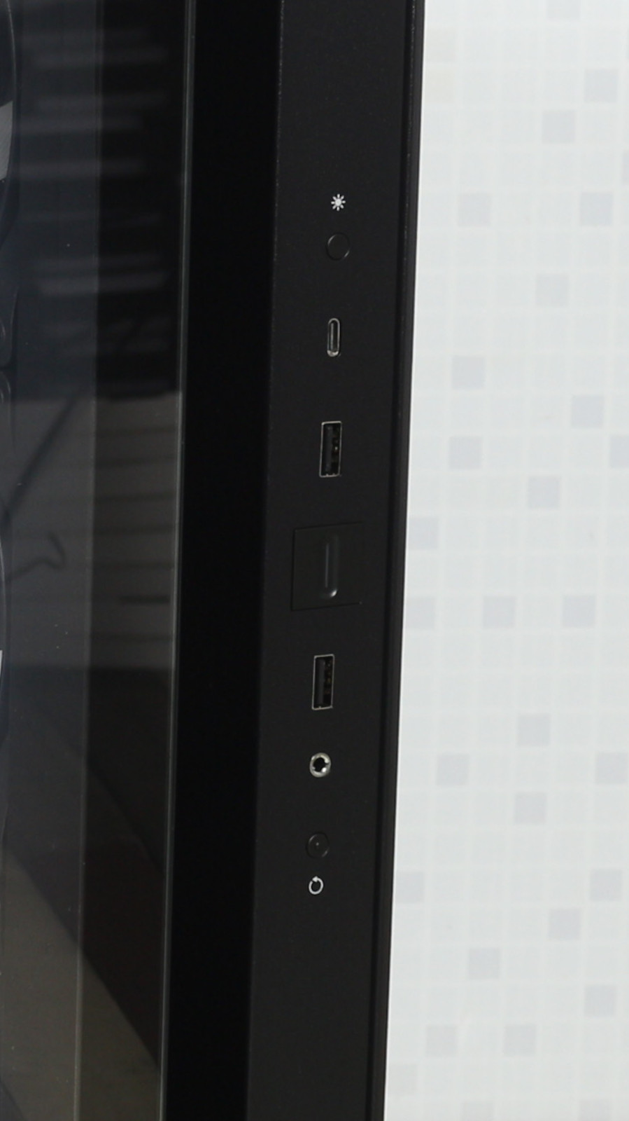 Праворуч розмістилися два порти USB 3.2 Gen 1 Type-A та один USB 3.2 Gen 2 Type-C. Кнопка запуску ПК має білий компактний індикатор з приглушеним світінням.