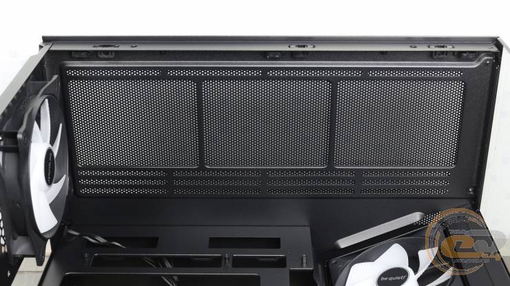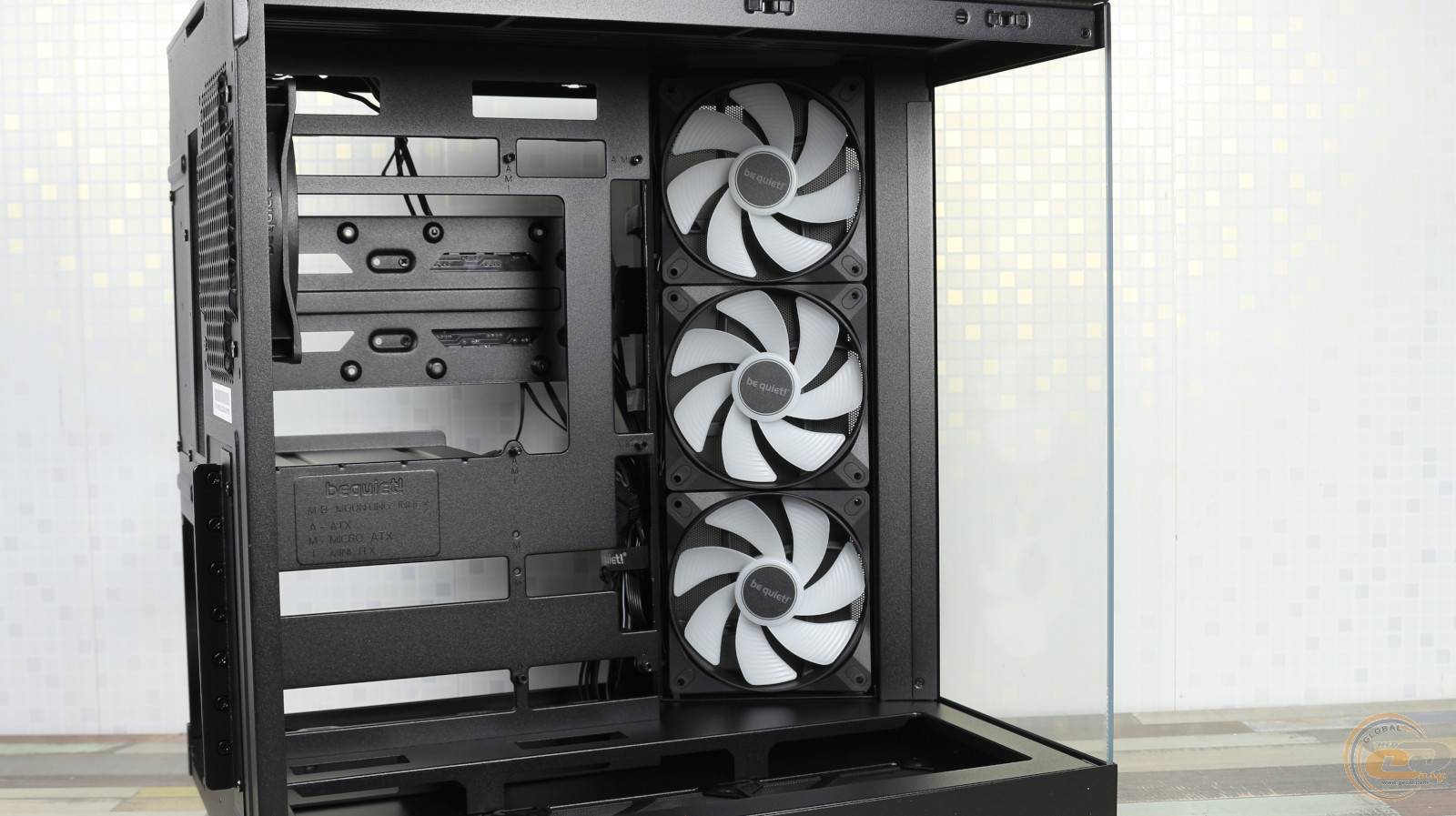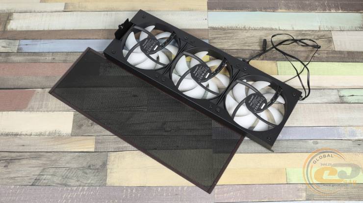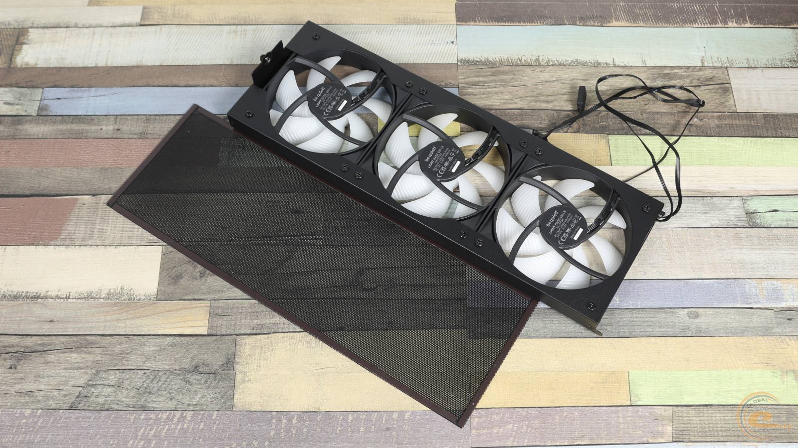 Фіксується вона трьома гвинтами й легко демонтується за потреби. Поряд знаходиться згаданий повітрозабірний отвір, за яким приховано знімний кронштейн із трьома 120-мм вентиляторами Light Wings LX PWM із реверсивними лопатями.