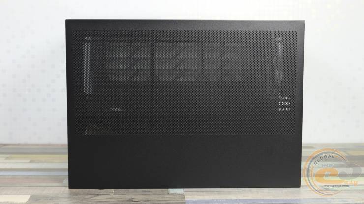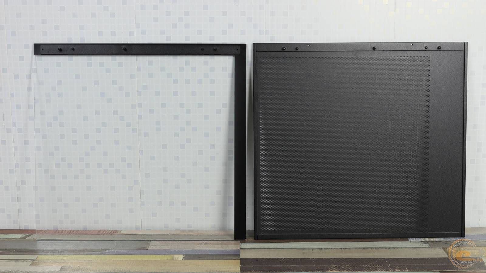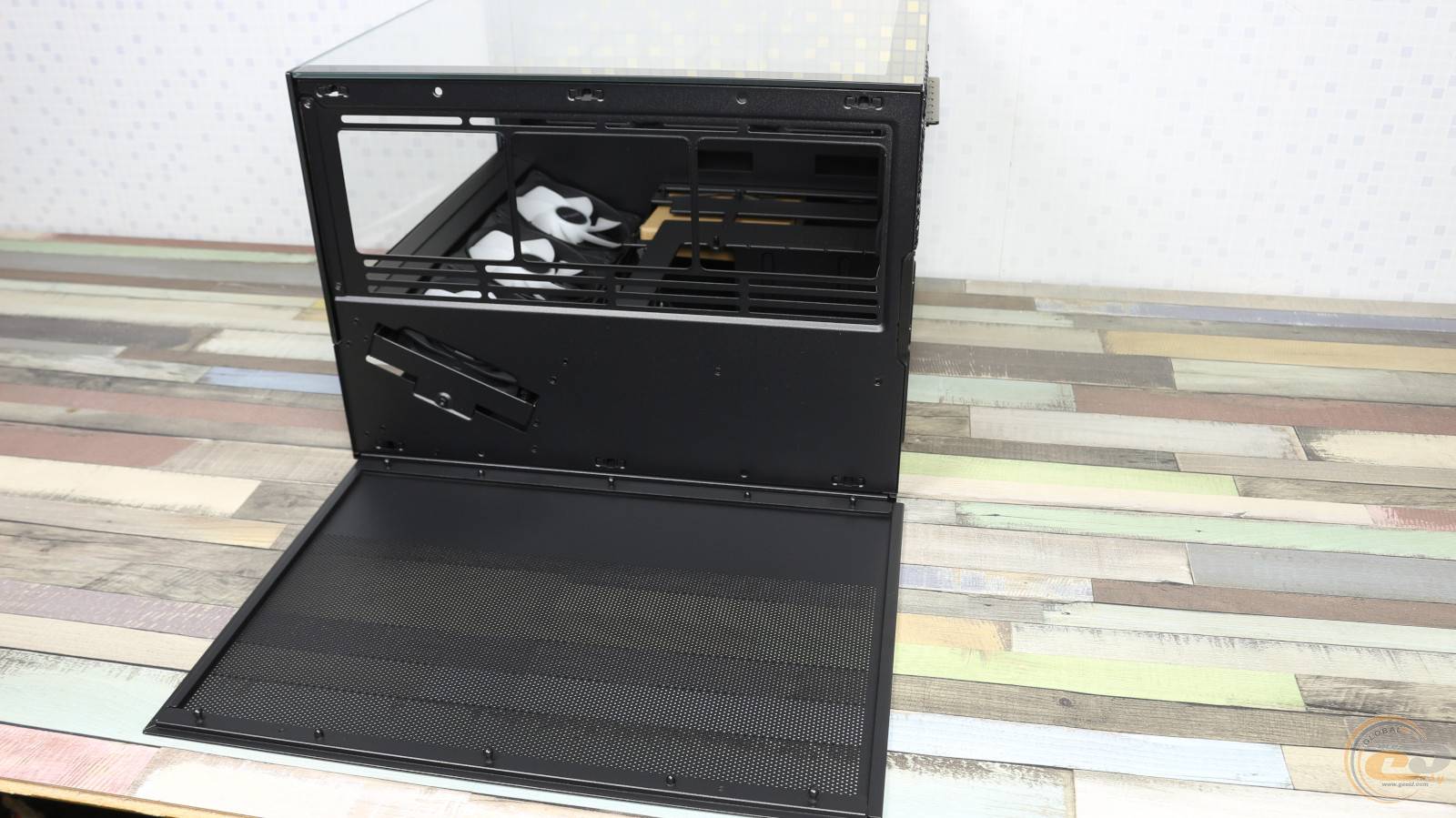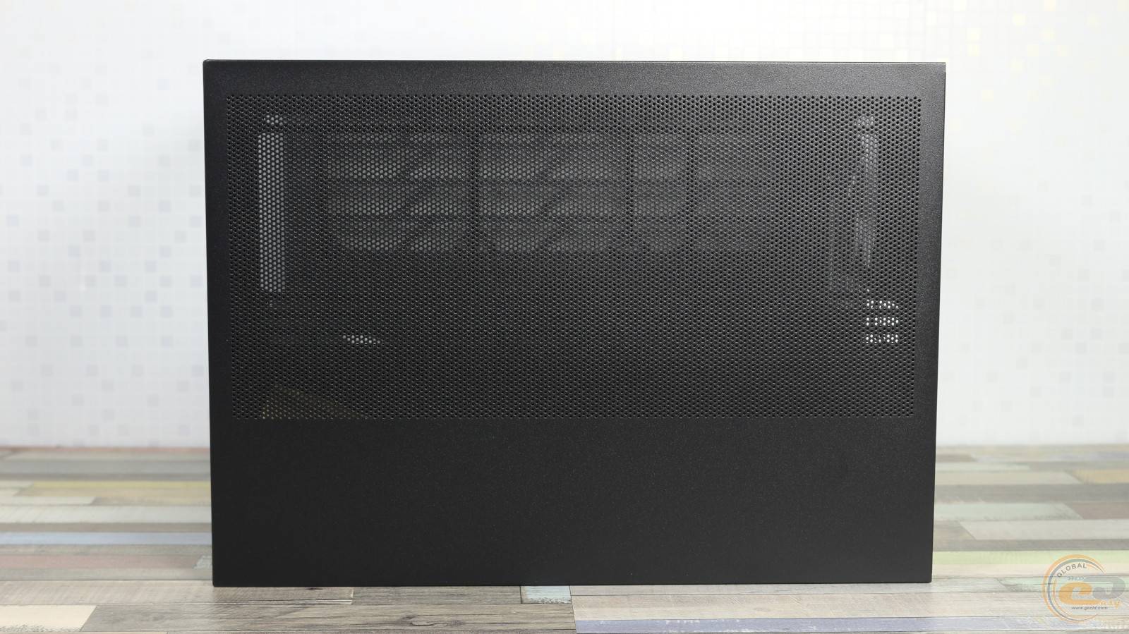 Щоб зняти їх, достатньо потягнути на себе і злегка підняти. Передній і нижній край лівої скляної панелі виконані повністю прозорими. Права сталева кришка, своєю чергою, отримала велику перфоровану секцію розміром 320 × 350 мм. Трохи дивує, що виробник не передбачив тут жодного пилового фільтра.