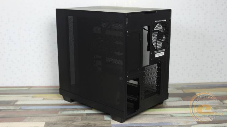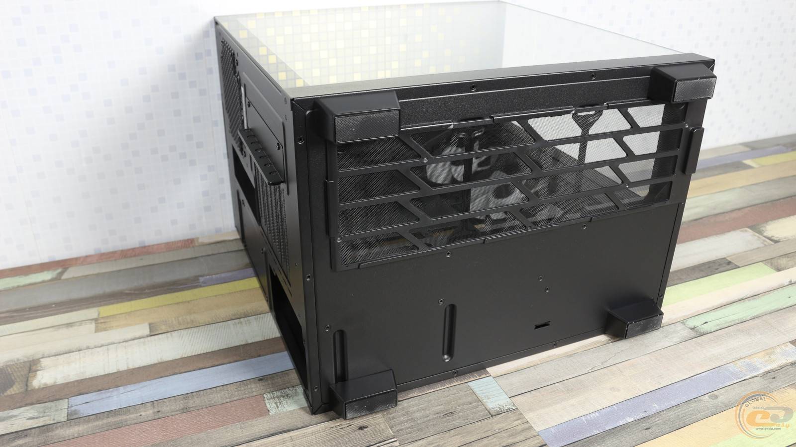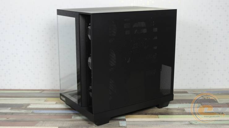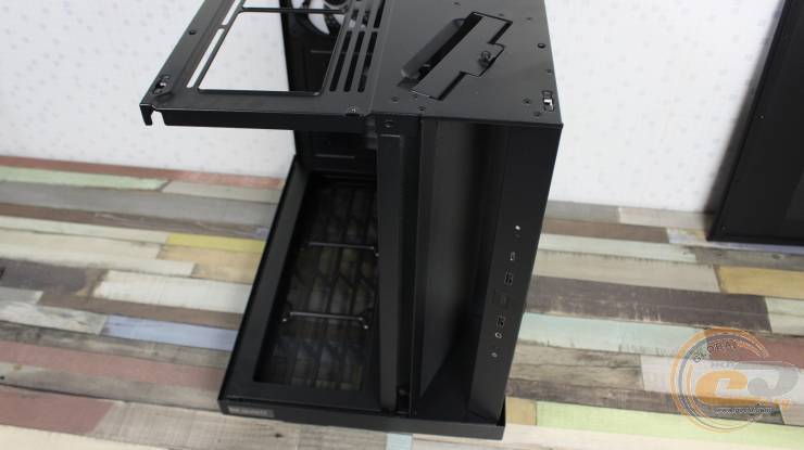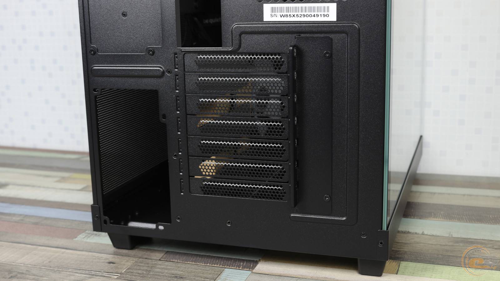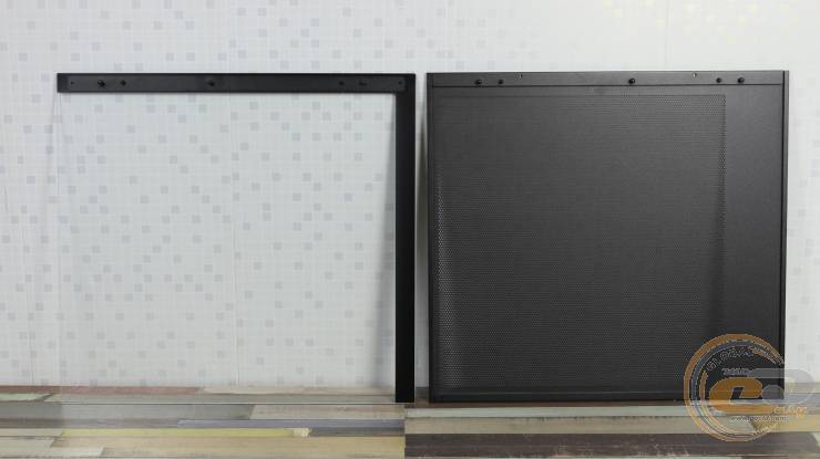 Щоб зняти їх, достатньо потягнути на себе і злегка підняти. Передній і нижній край лівої скляної панелі виконані повністю прозорими. Права сталева кришка, своєю чергою, отримала велику перфоровану секцію розміром 320 × 350 мм. Трохи дивує, що виробник не передбачив тут жодного пилового фільтра.