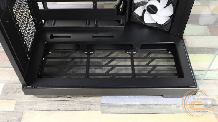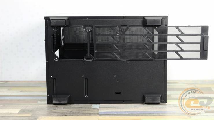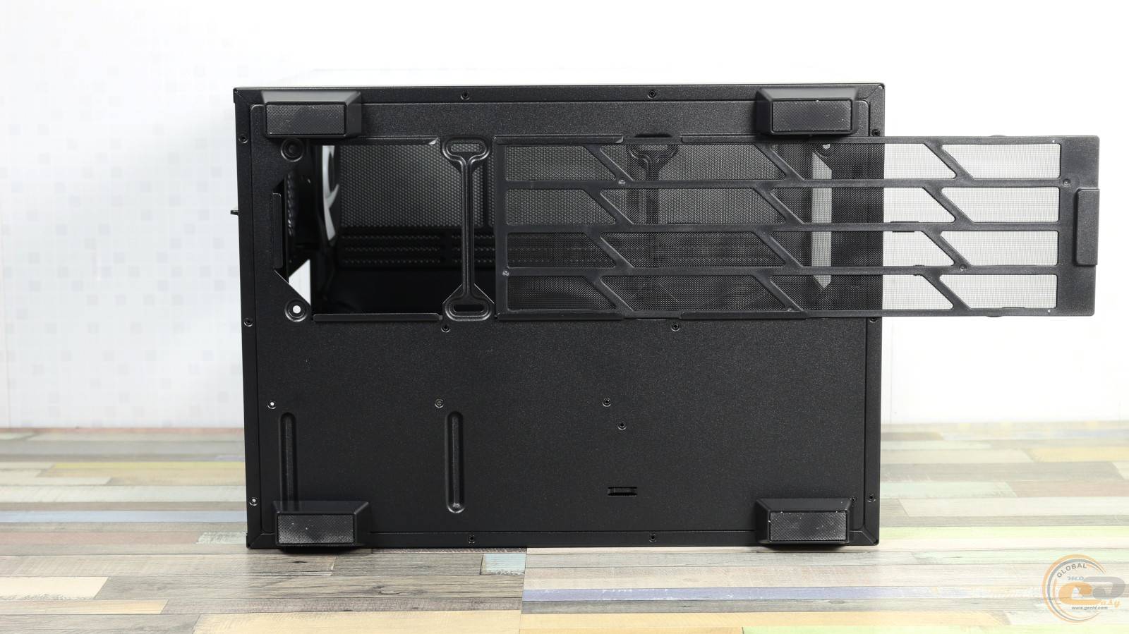 На дні корпуса встановлено довгий нейлоновий пиловий фільтр, що висувається вперед і тримається у пазах. Під ним — місце для монтажу трьох 120-мм вентиляторів.