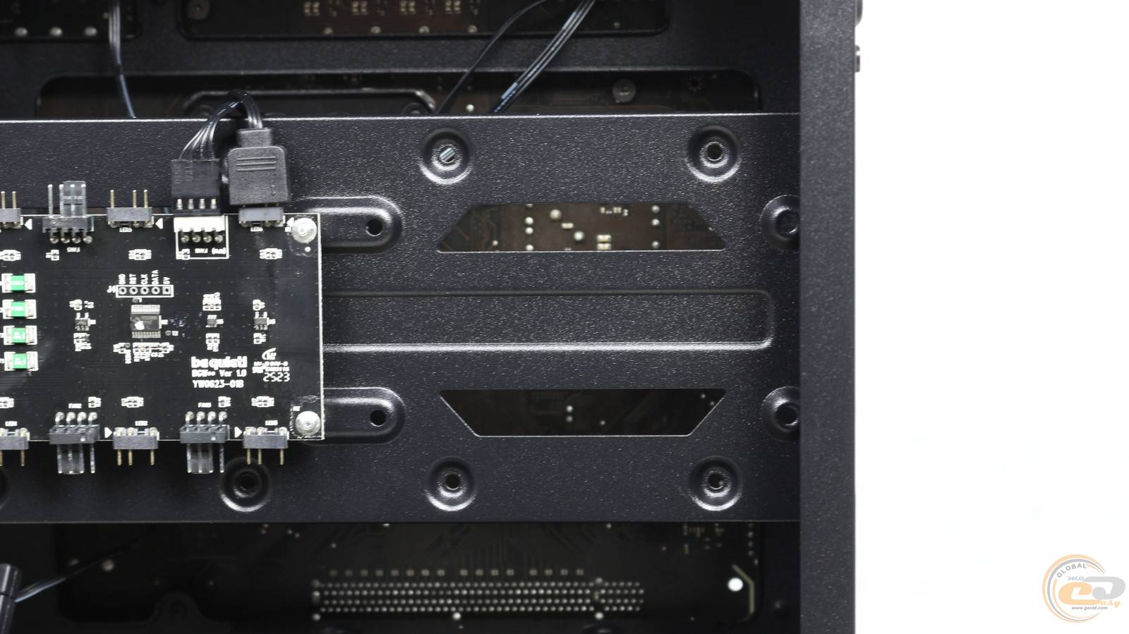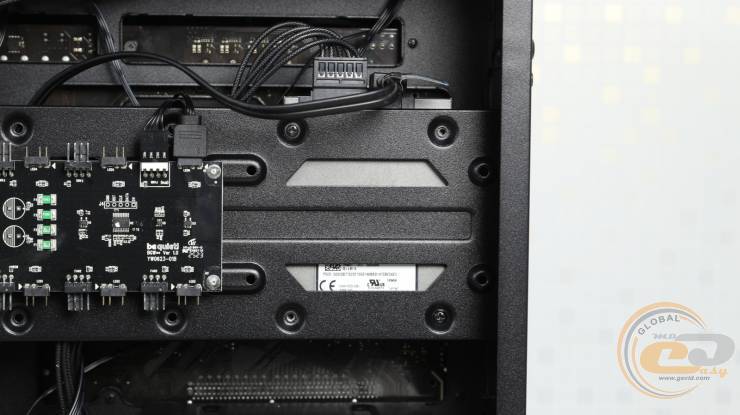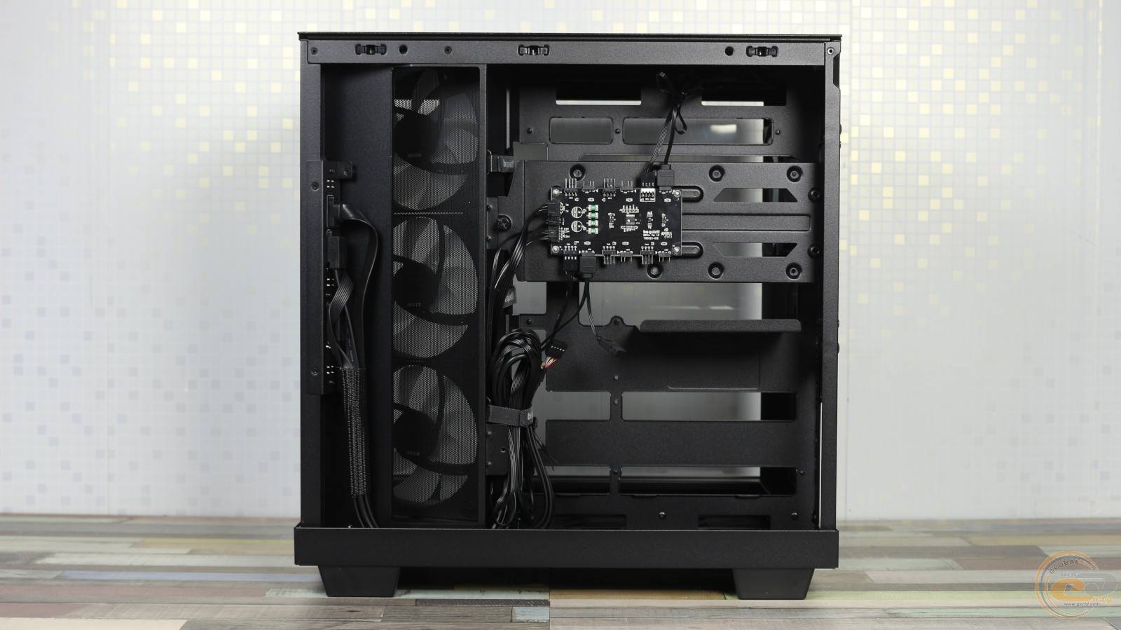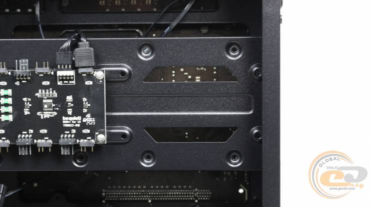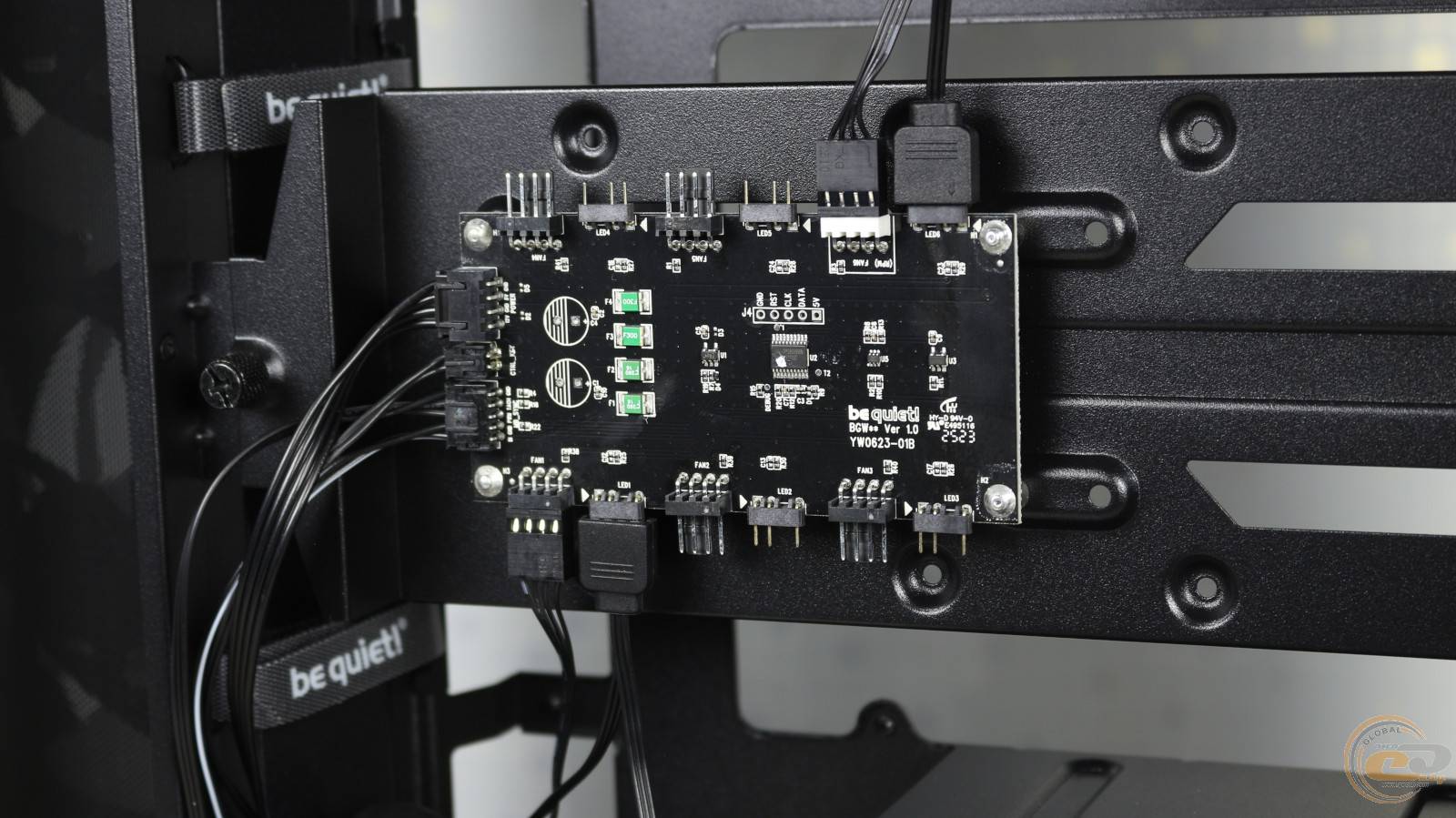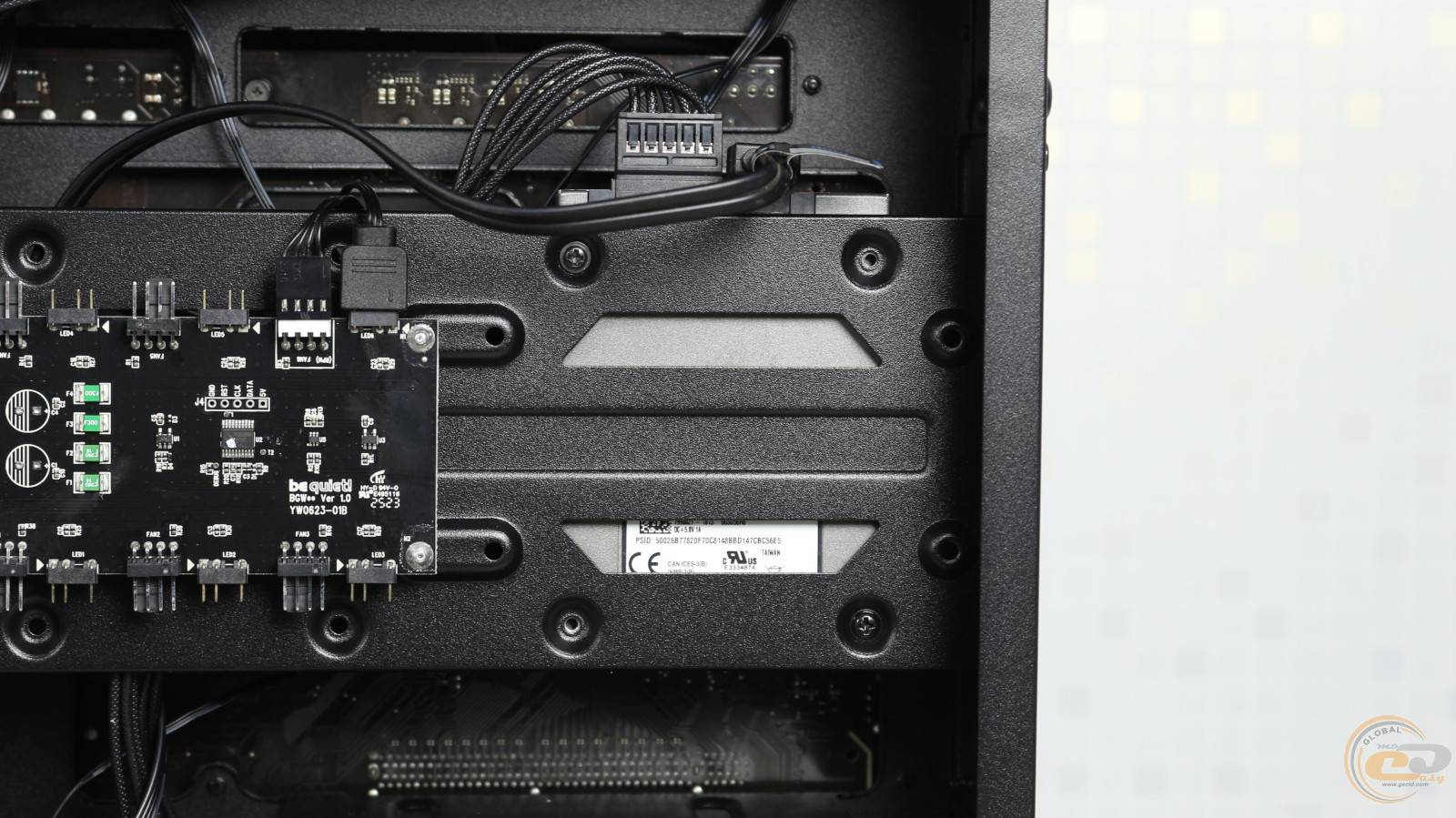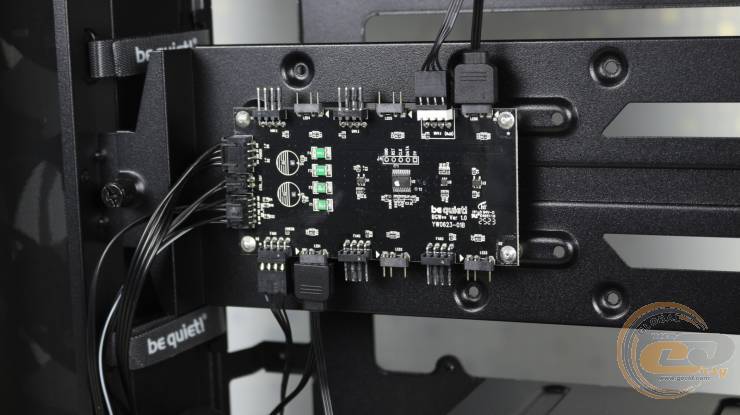 За піддоном материнської плати розмістився концентратор ШІМ та ARGB, до якого вийде підключити ще чотири вентилятори з адресним підсвічуванням. Живиться він через окремий кабель типу SATA.