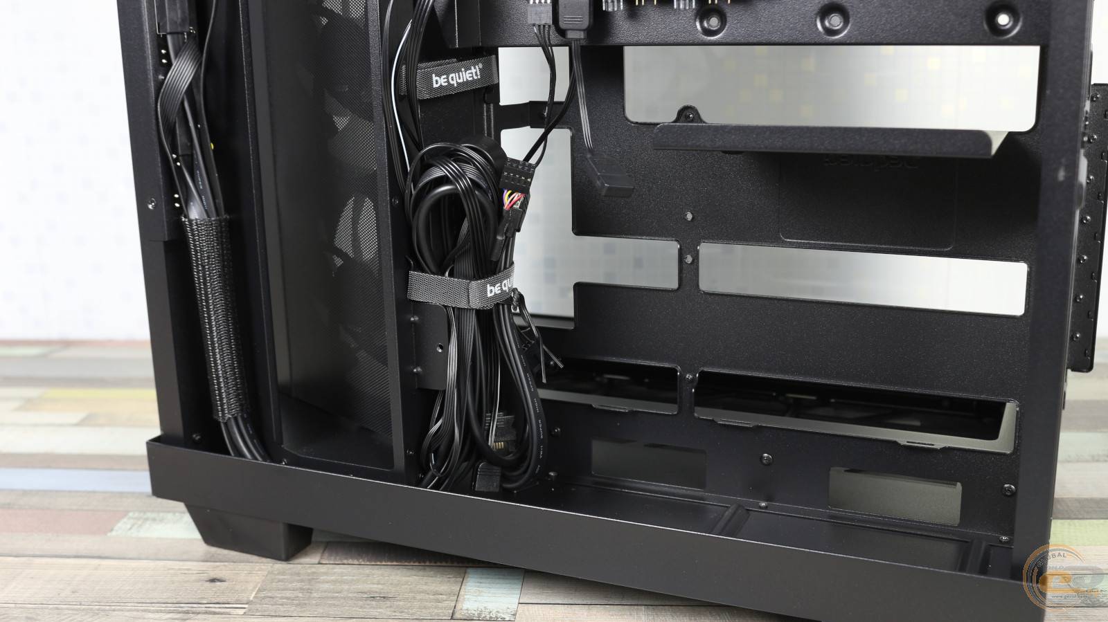 Двокамерна конструкція be quiet! Light Base 500 LX гарантує достатній простір за піддоном материнської плати для охайного укладання всіх кабелів, тоді як металева нижня панель приховує дроти вентиляторів, встановлених знизу. Виробник не забув і про власників материнських плат із тильними роз’ємами, дозволивши переставляти місцями кронштейн під накопичувачі та блок живлення.