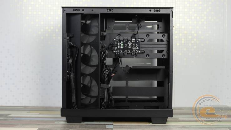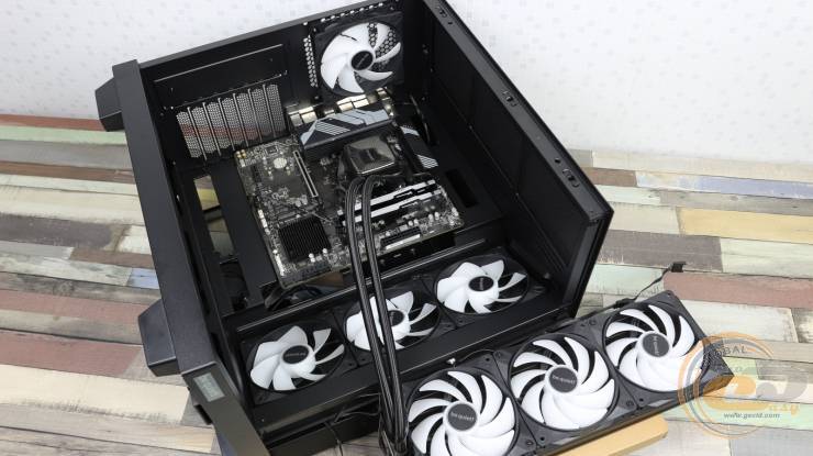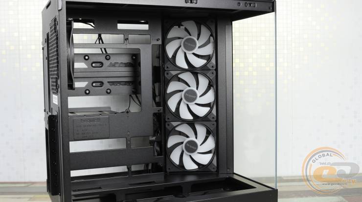 Після демонтажу панелі відкривається доступ до місць встановлення трьох 120-мм або двох 140-мм вентиляторів, чи взагалі РСО з радіатором довжиною до 360-мм.