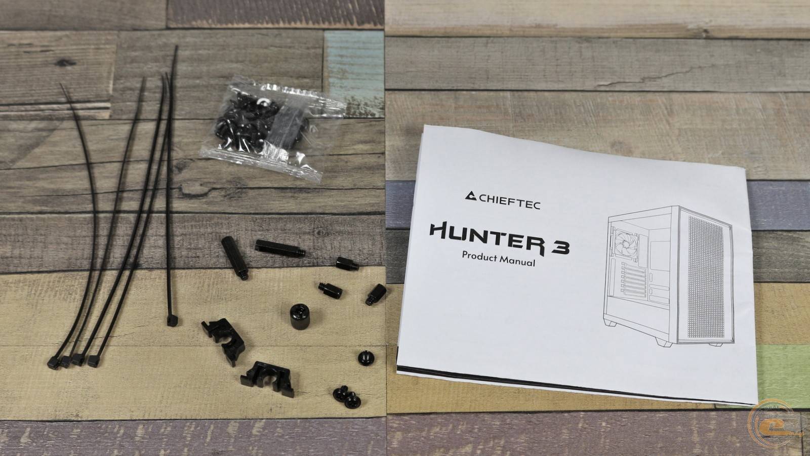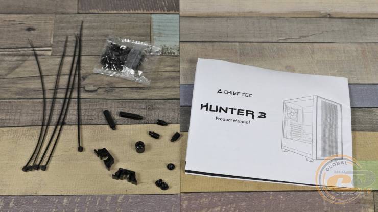 Комплектних компонентів цілком достатньо. Тут є: інструкція користувача, одноразові стяжки, пара фіксаторів для кабелів, стійки для материнської плати і голівка для їх встановлення, а також пакет із набором гвинтів.