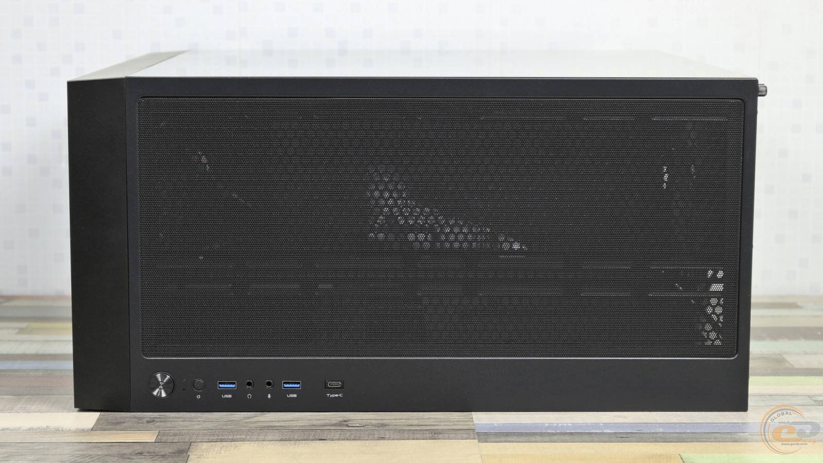 Передня панель корпусу CHIEFTEC Night Hunter GS-03B-BLK-OP вирізняється стриманим, класичним дизайном. Вона виконана з 0,7-мм сталі й отримала щедру перфорацію, що забезпечує добре продування. Загальну строгість чорного кольору вдало доповнює сріблястий логотип виробника.