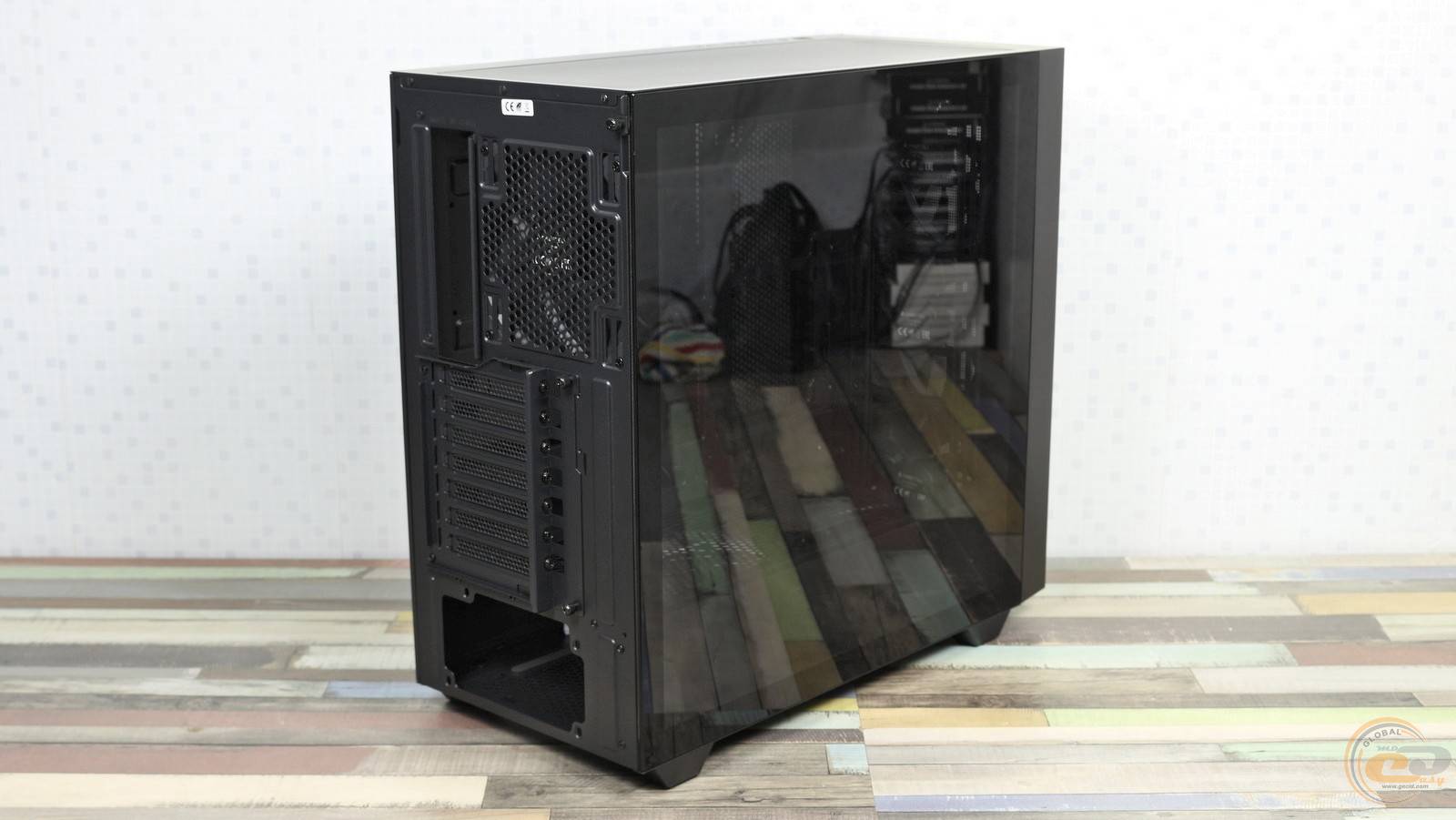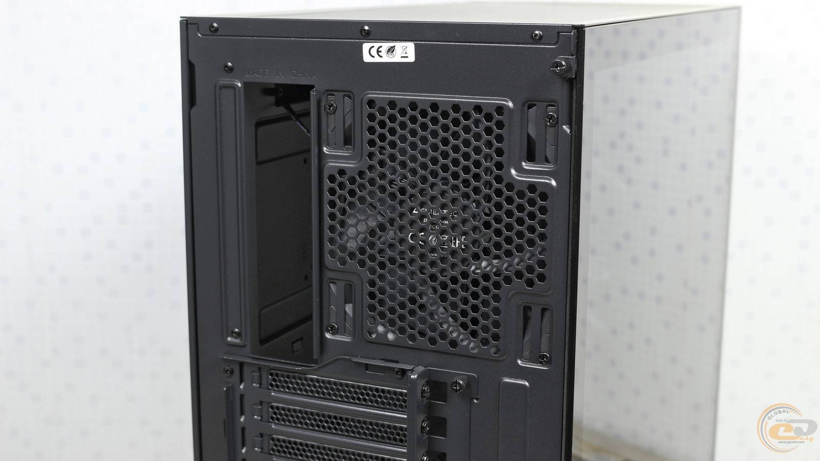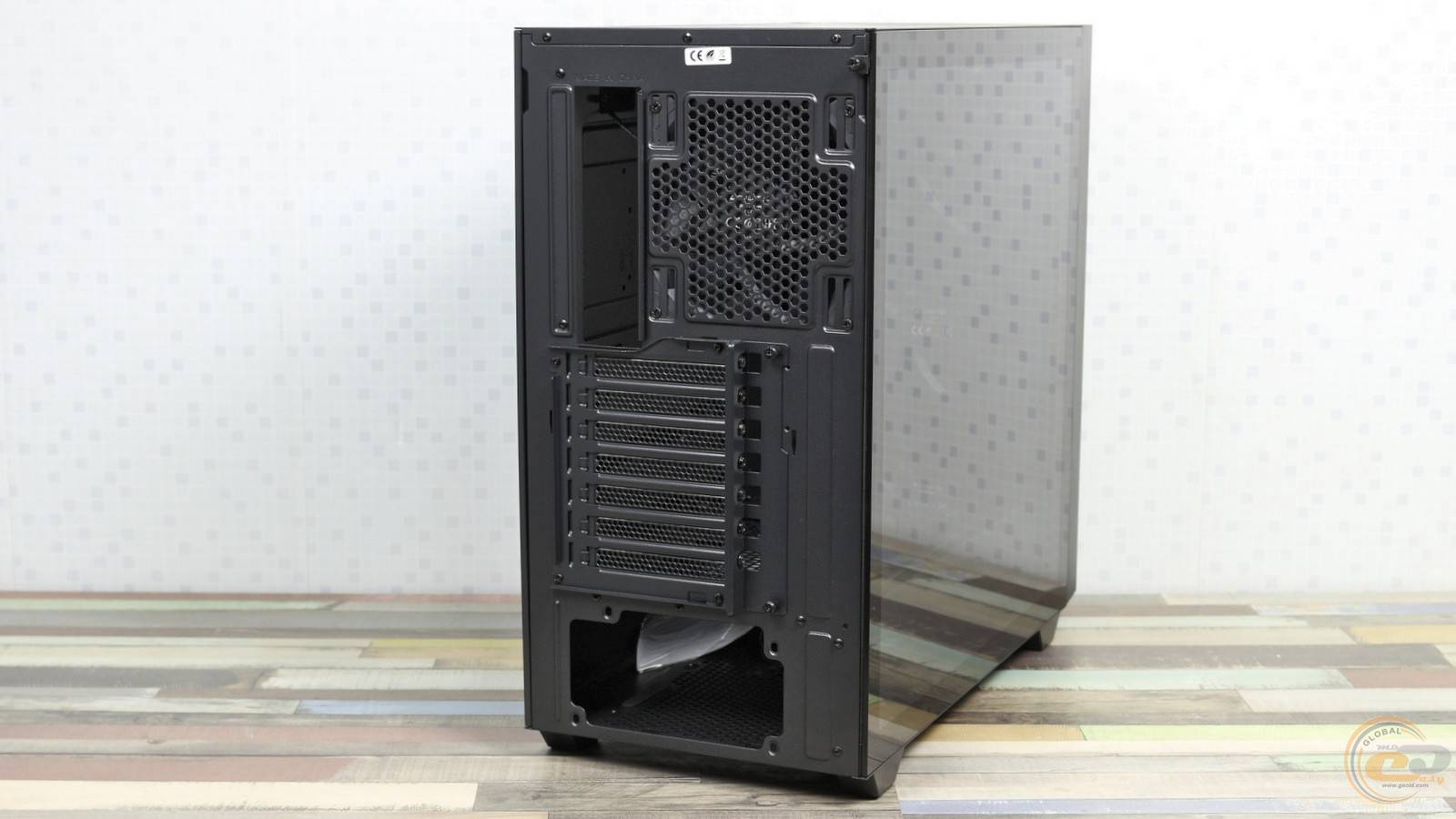 Хоча тильна панель не вирізняється чимось особливим, проте варто відзначити безгвинтове кріплення металевої боковини та зручну фіксацію скляної панелі — лише одним гвинтом із накатаною голівкою.