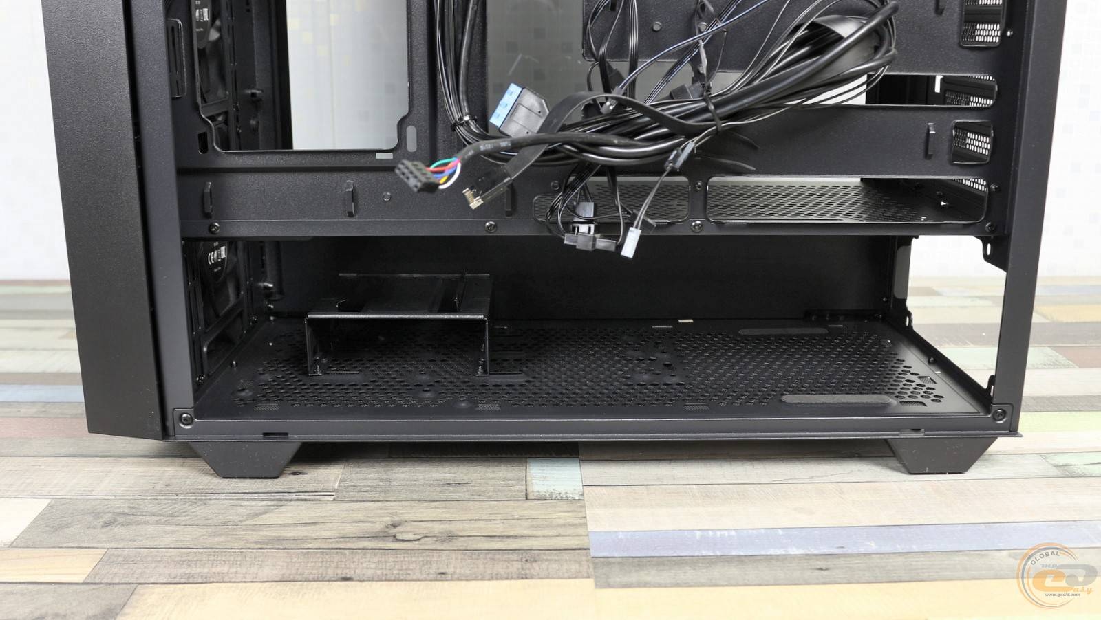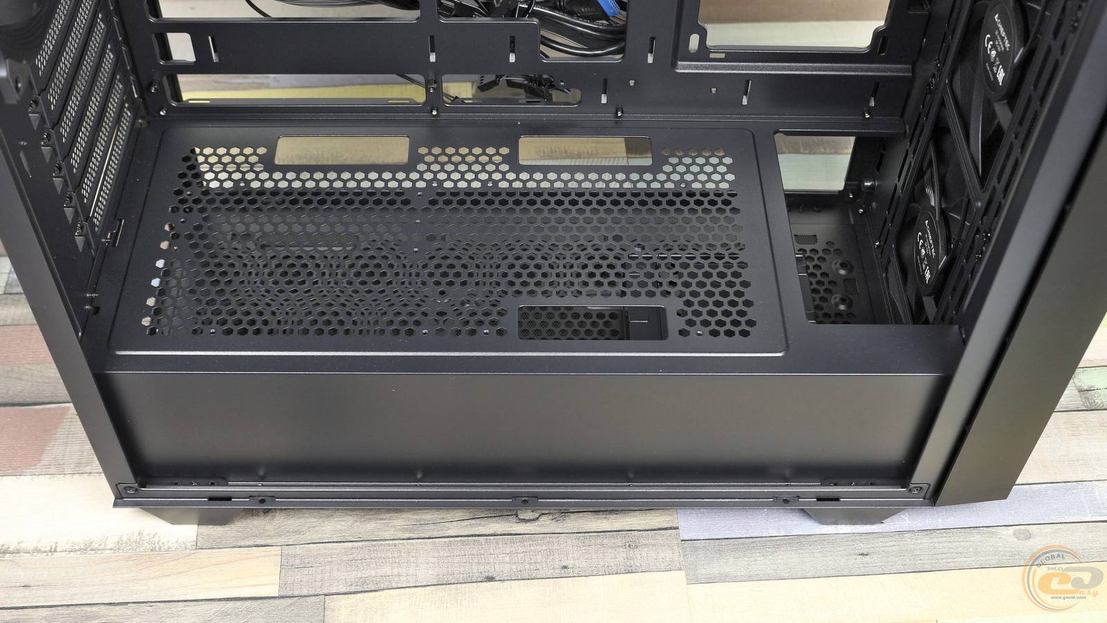 Прорізи для підведення кабелів також присутні, в тому числі й на тунелі. А ще сюди за бажання можна встановити пару 120-мм вентиляторів.