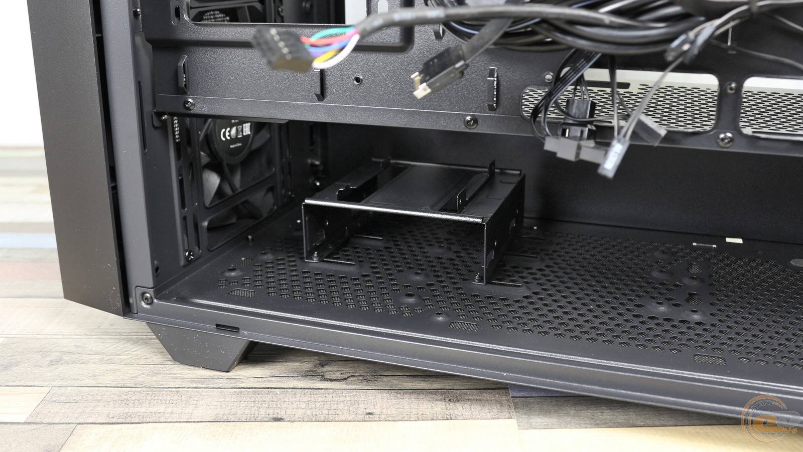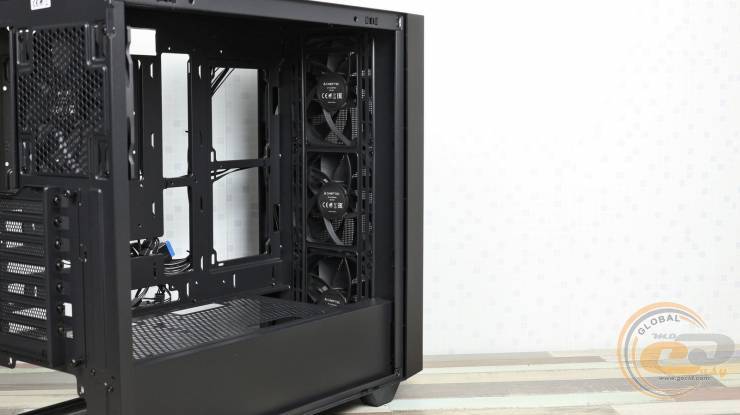 Ще дві 120-мм вертушки помістяться на піддоні, ближче до фронтальної панелі. Втім, враховуючи відмінне продування останньої, додаткові вентилятори навряд чи помітно вплинуть на температурний режим усередині корпуса.