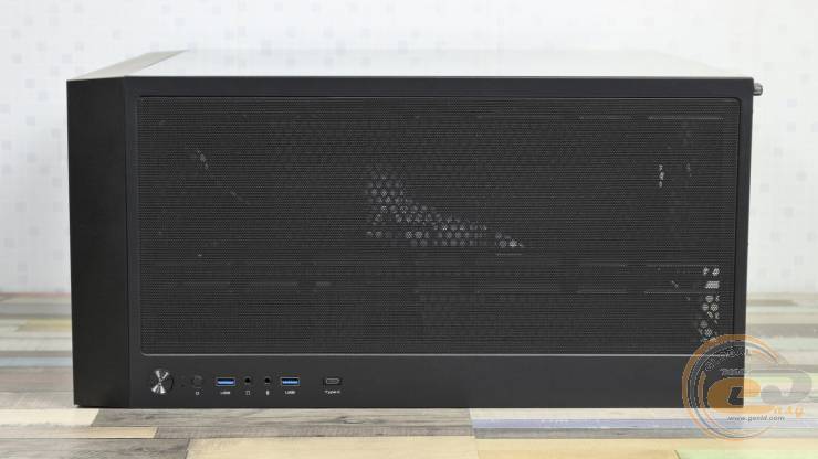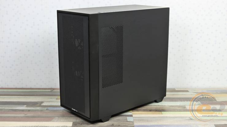 Що ж до боковин, то права виготовлена зі сталі товщиною 0,71 мм і оснащена ребрами жорсткості. На ній також передбачена магнітна сітка-фільтр — корисне доповнення у разі встановлення на піддоні двох 120-мм вентиляторів. Кріпиться ця панель так само, як і скляна: за допомогою металевих напрямних зверху та фіксаторів-вушок знизу.