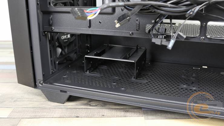 Ще один 3,5" жорсткий диск і 2,5" накопичувач можна встановити у кошик, розміщений у тунелі. Він закріплений гвинтами в продовгастих отворах, тож за потреби його можна посунути ближче до тильної панелі.