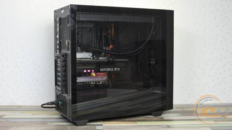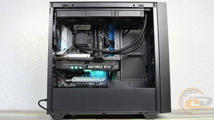 Три вентилятори рідинного процесорного охолоджувача працювали на максимальній швидкості 2100 об/хв. А частоту обертання вертушок відеокарти ми обмежили на рівні 70%. В свою чергу комплектні корпусні пропелери залишалися на тих місцях, де їх було встановлено із «коробки». Усі вони працювали на максимальних 1100 об/хв, забезпечуючи комфортний рівень шуму. Температура навколишнього середовища під час тестування становила +18°C.