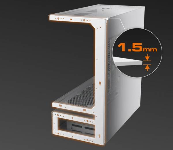 І, на завершення зовнішнього огляду - кілька слів про боковини. Права виконана з суцільного металевого листа товщиною 0,79 мм — це не найменший показник, але й далеко не рекордний. На ній передбачено перфорації, очевидно розраховані на встановлення позаду пари 120-мм пропелерів.