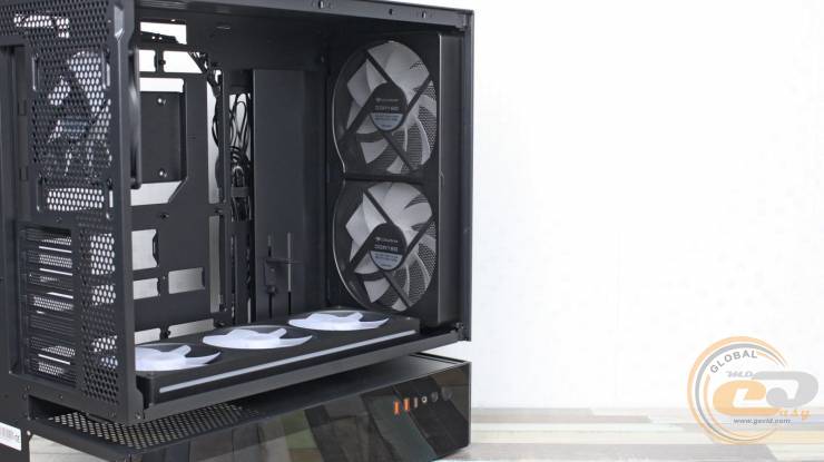 Позаду перфорованої передньої панелі в Mesh-версії встановлена пара 160-мм фронтальних вентиляторів.