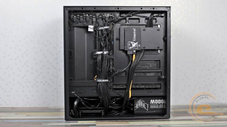 Трохи праворуч передбачені багаторазові стяжки-липучки з фірмовими написами, які допоможуть охайно прокласти кабелі — для цього тут є аж 38 мм вільного простору.