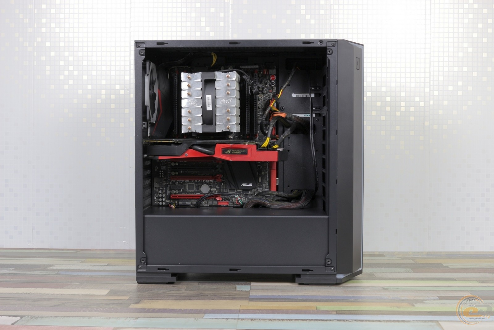 Без будь-яких хитрощів до корпуса помістяться відеокарти довжиною до 365 мм (без вентиляторів або радіаторів на передній панелі) і процесорний кулер висотою до 180 мм.