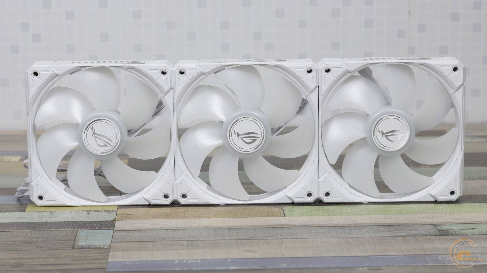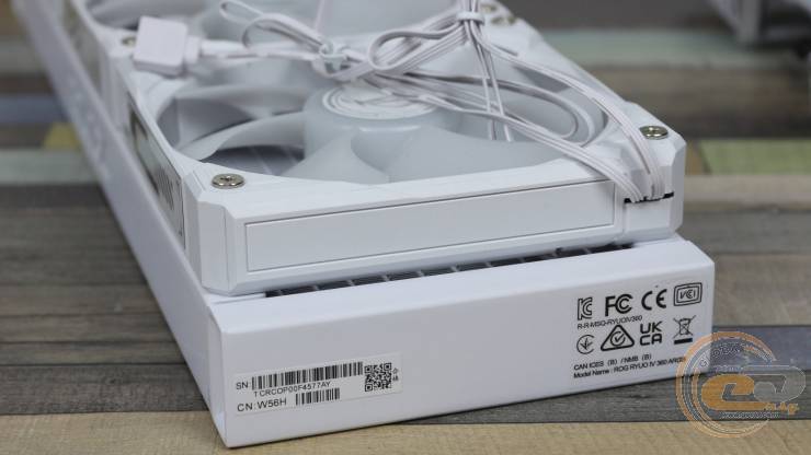 На двох гранях кожного вентилятора можна помітити напівпрозорі стилізовані під серію ROG елементи, що звуться AURA FAN EDGE. Вони беруть на себе роль бічного підсвічування радіатора.