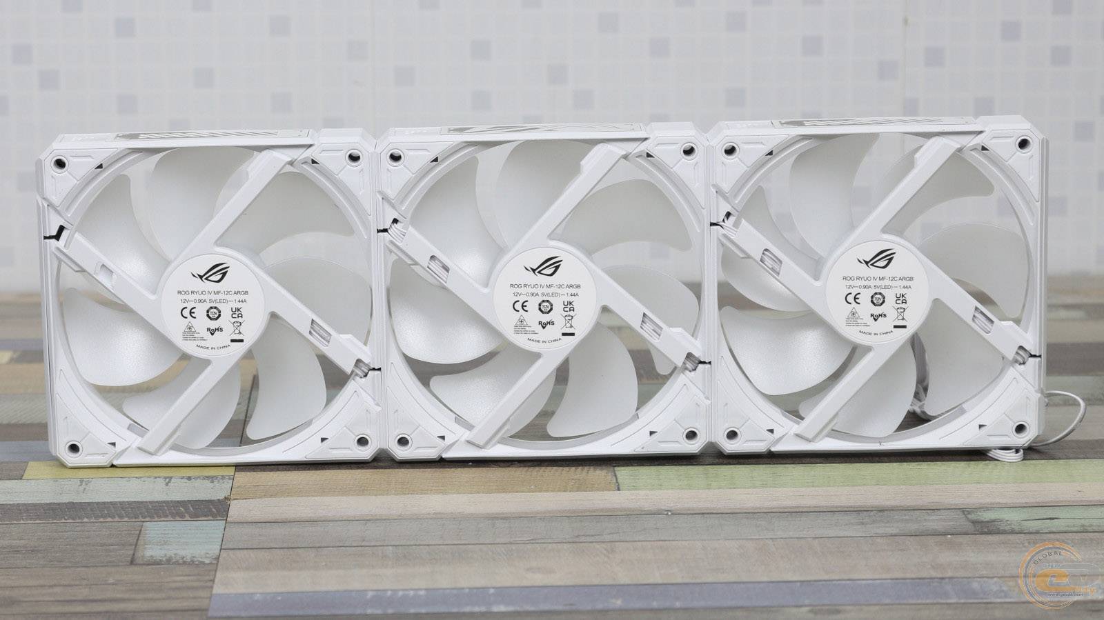 Обдувають радіатор три 120-мм вентилятори ASUS ROG RYUO IV MF-12C ARGB із сімома лопатями та розмірами 120 х 120 х 25 мм. Але, не зважаючи на збереження аналогічної назви, вони за характеристиками відрізняються від протестованих нами раніше.