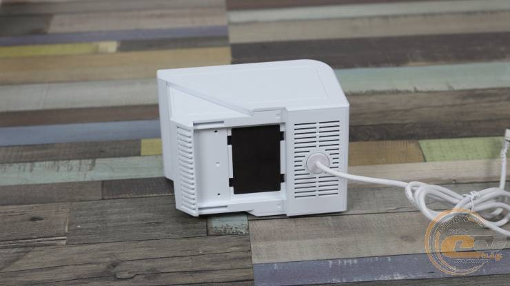 Зверху на ньому розташована рухома алюмінієва рамка для встановлення екрану, тому його загальні розміри збільшуються до 133 х 105 х 137 мм.