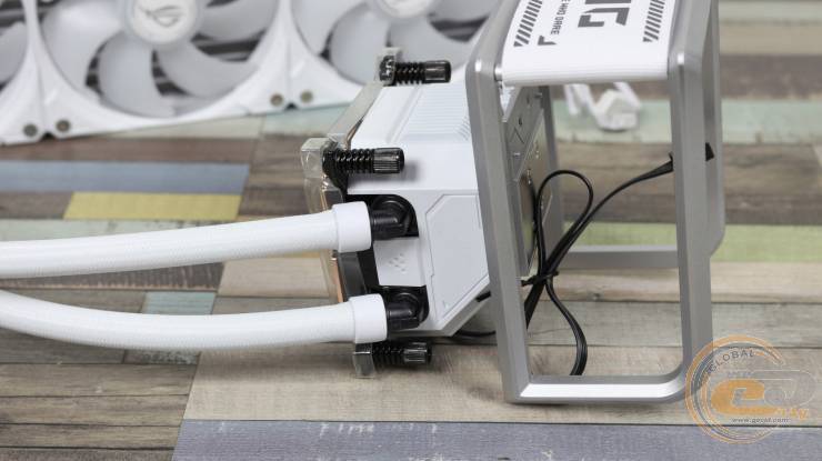 ASUS ROG Ryuo IV 360 ARGB White Edition є ще однією моделлю у серії ROG RYUO, що оснащена великим вигнутим дисплеєм на водоблоці. Але на відміну від ASUS ROG Ryuo IV SLC 360 ARGB, вона побудована за класичною для РСО схемою та використовує гумові шланги в нейлоновому обплетенні довжиною 400 мм.