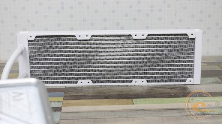 Радіатор отримав габарити 399,5 х 120 мм та збільшену до 30 мм товщину. Як і завжди, на ньому передбачено три набори посадкових отворів для 120-мм вентиляторів з обох сторін.
