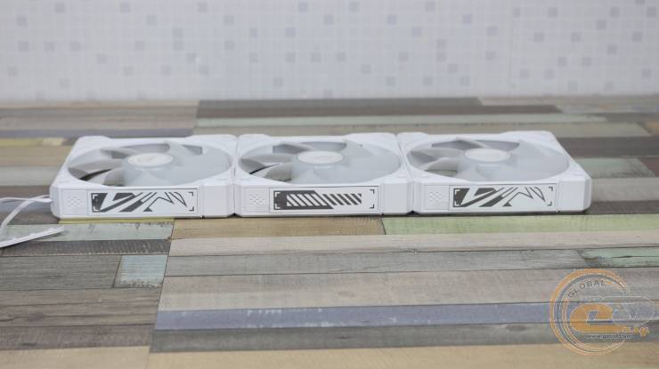 Лопаті також отримали підсвічування та гладку поверхню. Вони виготовлені з напівпрозорого білого пластику. На рамці кожного вентилятора по кутах з обох сторін наявні гумові демпфери для зменшення передачі вібрації.