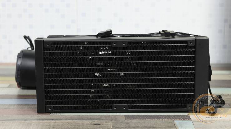 Пофарбований у чорний колір радіатор набраний дванадцятьма каналами, між якими прокладено стрічку. Щільність розміщення ребер у ньому становить 20 FPI. Радіатор має розміри 276 х 120 х 27 мм та два набори посадкових отворів для 120-мм вентиляторів з обох сторін. При цьому виробник заявляє про кращу його ефективність за рахунок збільшення товщини ребер.