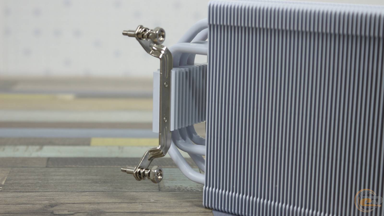 Бічні сторони цієї «башти» є повністю симетричними. Радіатор складається з 50 алюмінієвих пластин, що щільно насаджені на розміщені у шаховому порядку чотири мідні теплові трубки діаметром 6 мм. Щоб не псувати загальний вигляд, теплові трубки також пофарбовано у білий колір.