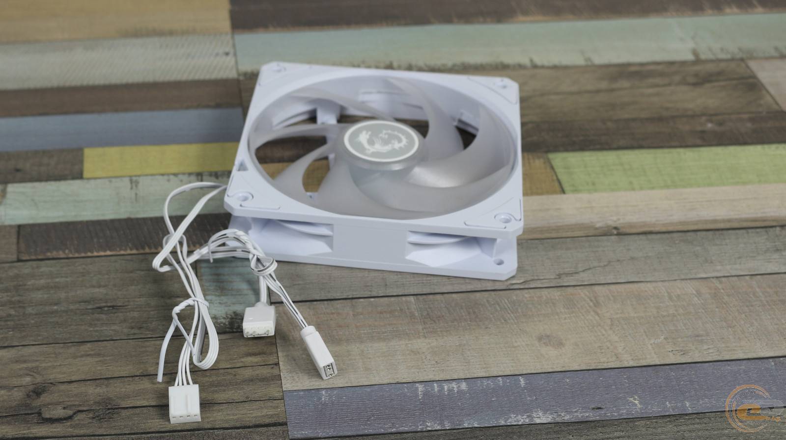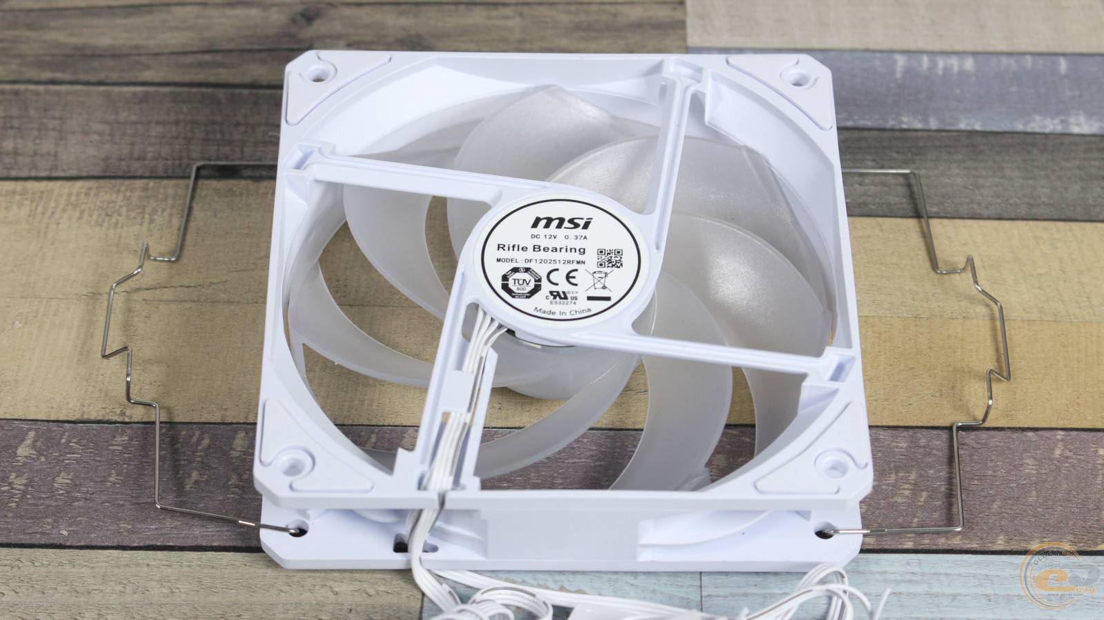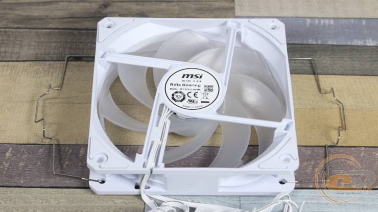 Тепло від радіатора відводить один 120-мм вентилятор MSI DF1202512RFMN із сімома лопатями, які об’єднані кільцем на кінцях (конструкція CycloBlade7).
