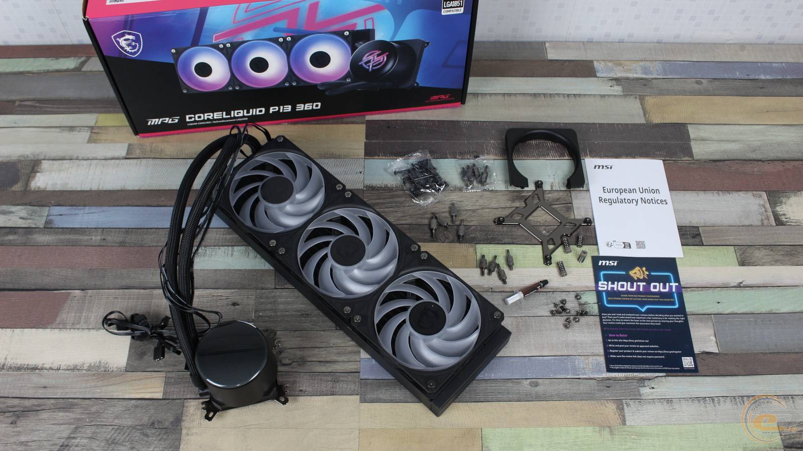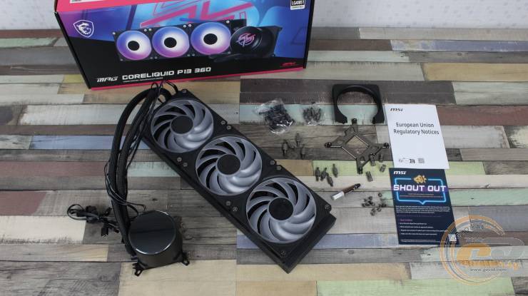Загальний алгоритм монтажу MSI MPG CORELIQUID P13 360 значно спрощується завдяки універсальним кріпленням на водоблоці. Додатково заощадити час допомагають попередньо встановлені на радіаторі вентилятори з послідовним підключенням між собою.