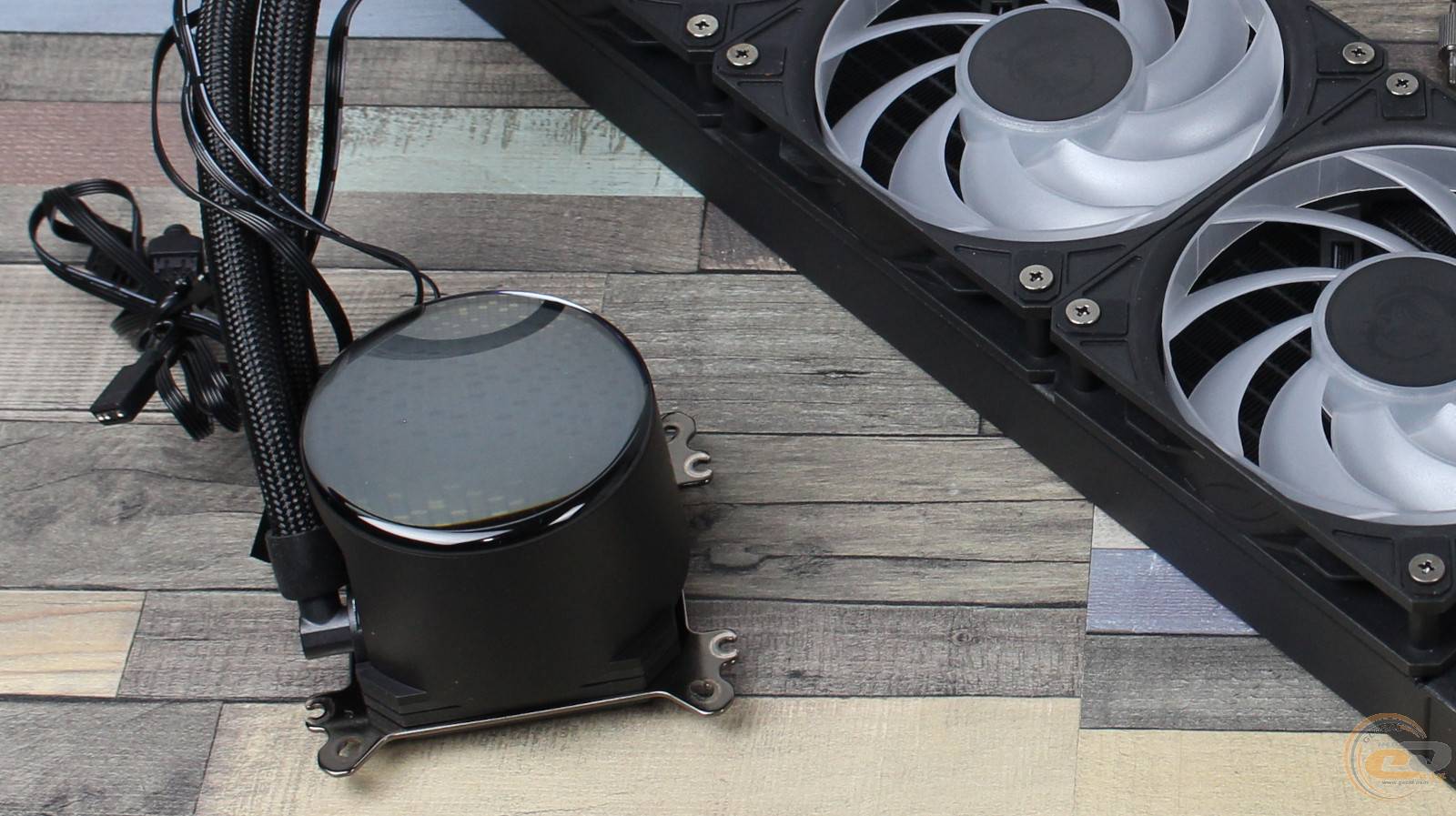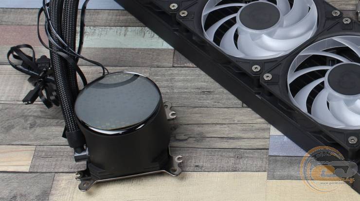 Помпа, інтегрована у водоблок, працює зі швидкістю до 3400 ± 10% об/хв і регулюється за допомогою ШІМ. Під час роботи на максимальних обертах від неї чутно невелике гудіння, однак якщо ПК не розташований на столі, воно практично не заважатиме. MSI заявляє для неї очікуваний термін служби у 50 000 годин (за температури навколишнього середовища близько 40°С).