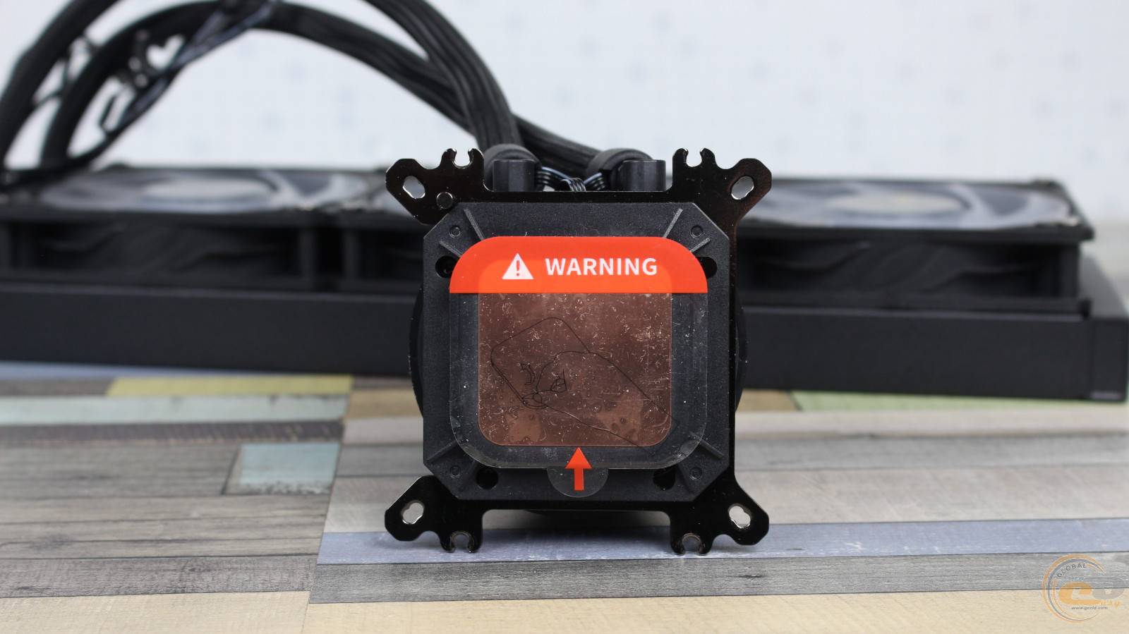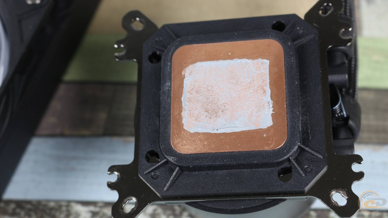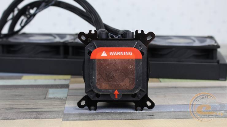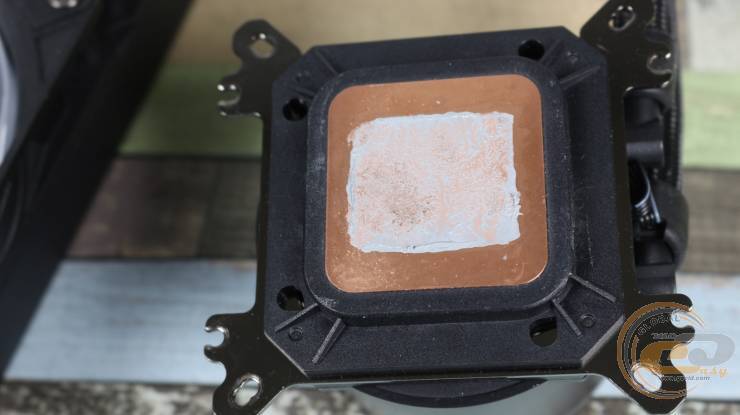 Термоінтерфейс на ній відсутній – замість нього наклеєно прозору захисну плівку з текстовим попередженням щодо встановлення. Тому до комплекту постачання завбачливо додано фірмову термопасту.