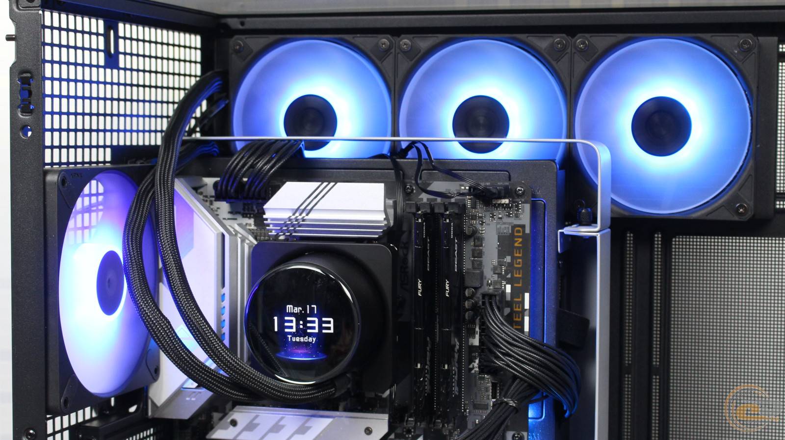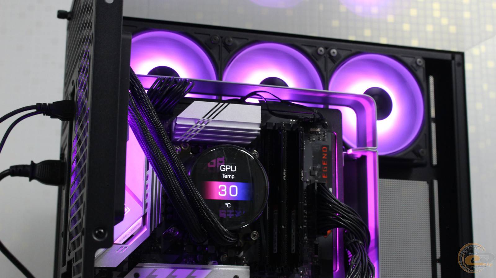 Кольори підсвічування вентиляторів виявилися дійсно насиченими та яскравими. Ну а наявний на водоблоці екран допоможе додати певну «родзинку» вашій збірці.