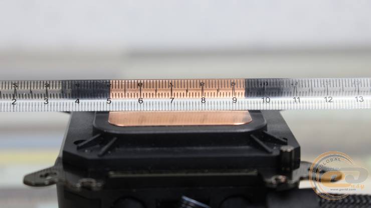 Її поверхня рівна та добре відполірована. Компанія MSI стверджує, що використовує тут мікроканали з кроком 0,1 мм для збільшення ефективності відведення тепла. Розміри основи становлять 44 х 42 мм. Гвинти фіксації сховані від користувача.