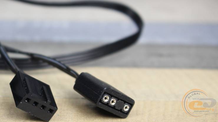 До нього під’єднується комплектний кабель-перехідник зі стандартними для материнських плат або контролерів: 4-контактним для живлення та 3-контактним для ARGB-підсвічування.